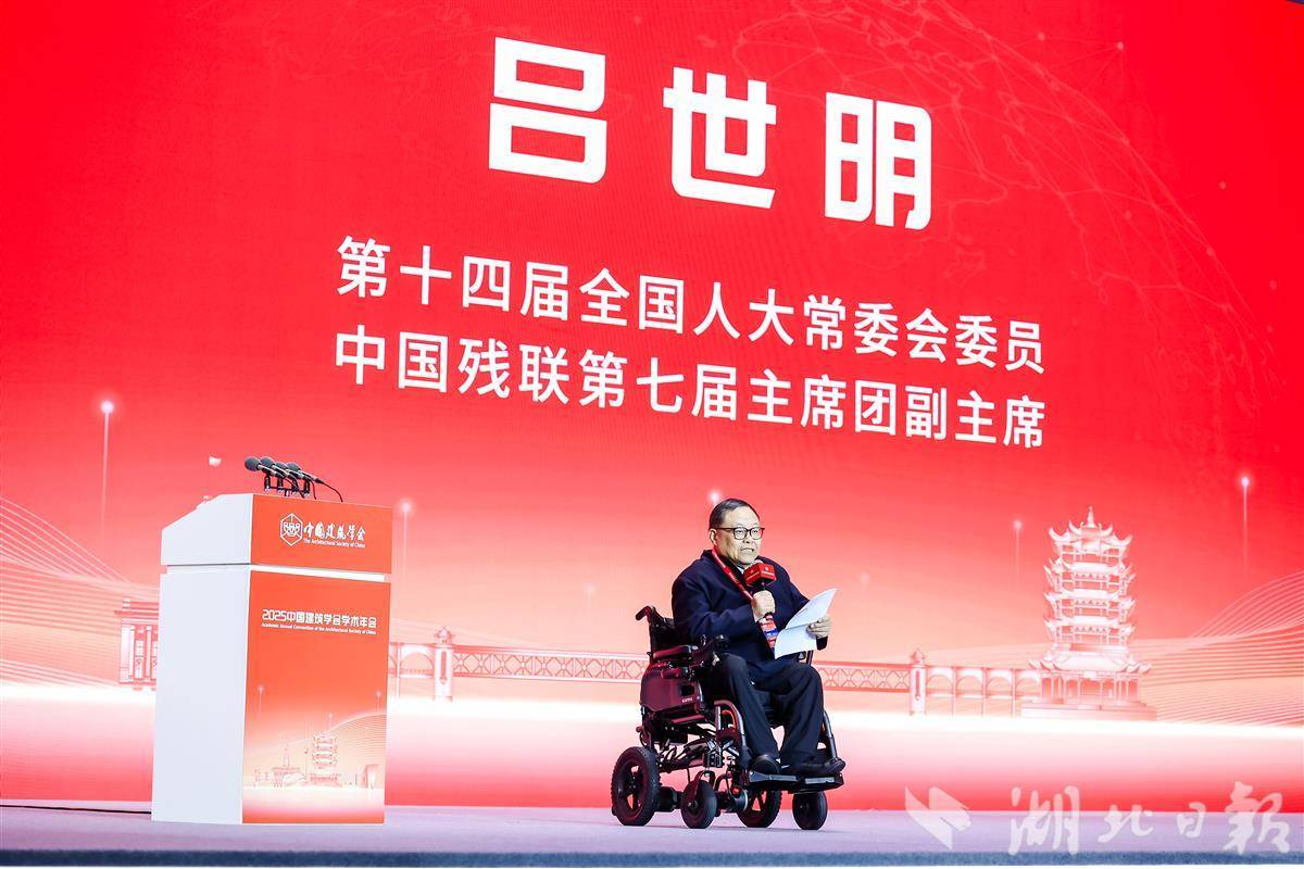 11月10日,在武汉国际博览中心汉厅,由中南建筑设计院承办的2025中国建筑学会学术年会开幕式上,第十四届全国人大常委会委员、中国残联第七届主席团副主席吕世明坐着电动轮椅登上主席台发言时透露了这个细节。
