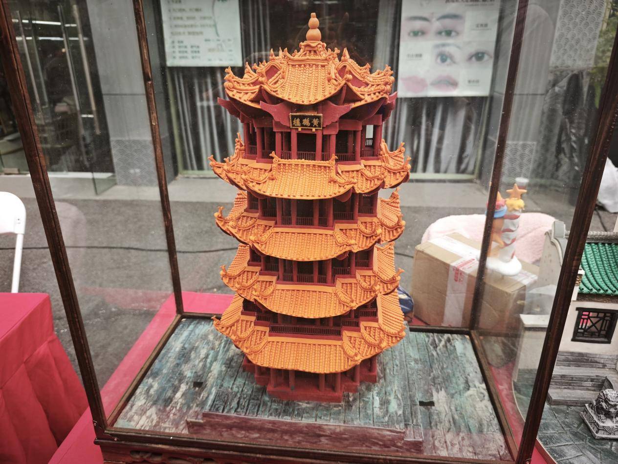 现场还摆放了面塑而成的黄鹤楼、古琴台,王虎介绍,这两尊作品均已存放五年以上,所有零件都用面团制成,色彩、形态依然完好。“非遗凝聚着老祖宗的智慧,能受到大家的喜爱绝非偶然,那位芜湖的师傅捏了40年,沉下心、做下去就会有人看到。”王虎说。