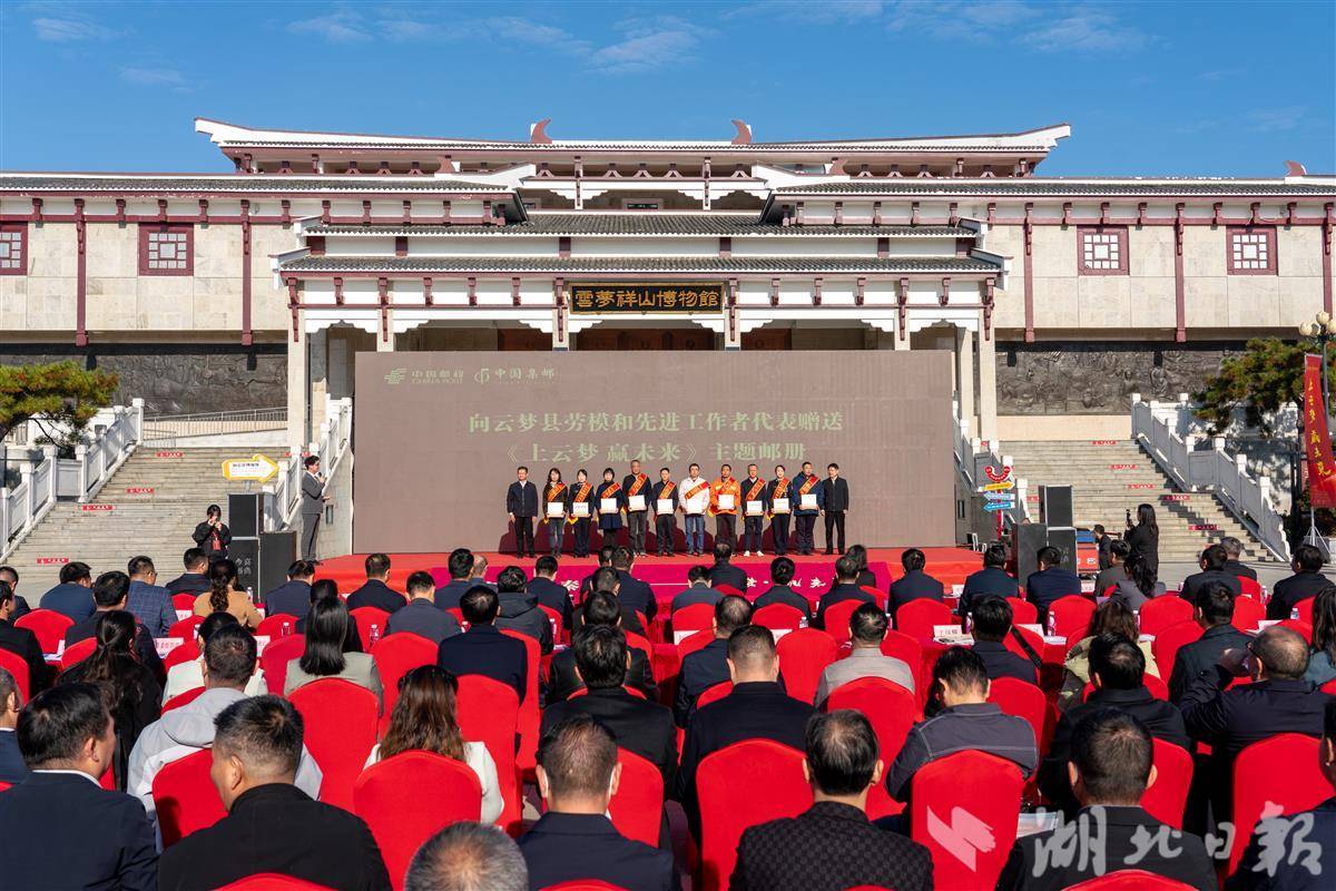 云梦县劳动模范和先进工作者代表获赠《上云梦 赢未来》主题邮册。(湖北日报全媒记者 王欣 通讯员 蔡青阳 摄)