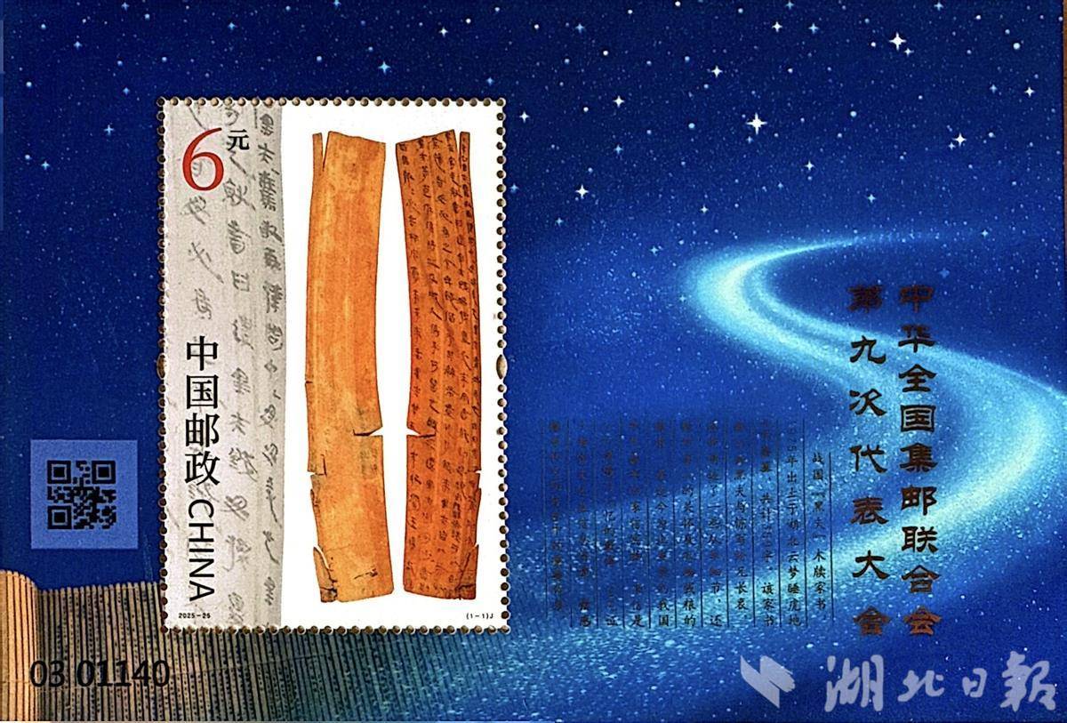湖北日报讯(记者王欣、通讯员陈宇轩、蔡青阳)方寸藏千年,家书“邮”古今。11月13日,中华全国集邮联合会第九次代表大会在云梦县博物馆举行,会上发布了云梦睡虎地战国“黑夫”木牍家书纪念邮票,这是云梦相关题材首次登上“国家名片”,让穿越千年的“时空来信”可触可藏。