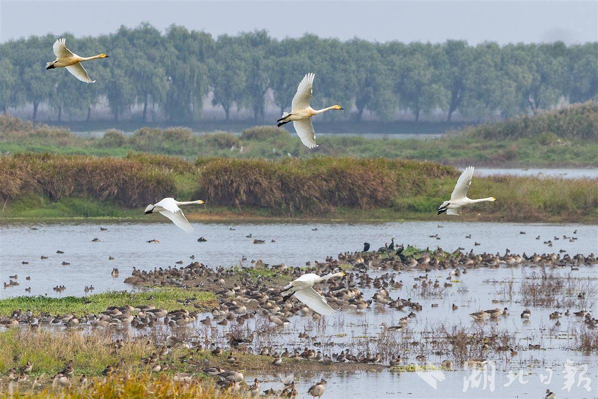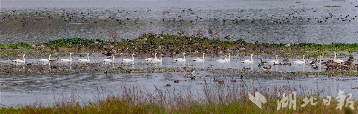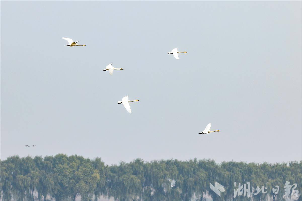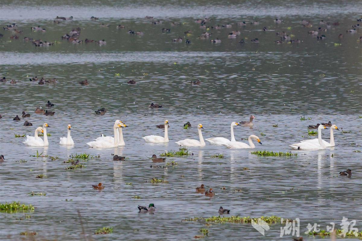 2025年11月11日,武汉市东西湖区柏泉府河湿地天鹅湖,十多只小天鹅列队戏水,灵动有趣。作为候鸟迁徙重要驿站,每年冬季吸引大量候鸟前来越冬,绘就冬日生态画卷。近年来,当地加强湿地保护,生态持续向好,成为候鸟栖息的温馨家园。(湖北日报全媒记者 倪娜 通讯员 徐卉婷 摄)