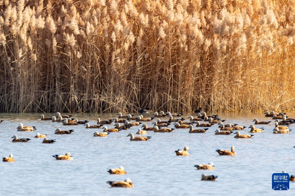 入冬以来,大批候鸟陆续飞抵位于甘肃省张掖市的张掖黑河湿地国家级自然保护区高台段休憩觅食。作为全球9条候鸟迁徙通道之一的中亚通道的重要中转站,每年约有18万至25万只水禽在张掖黑河湿地国家级自然保护区集结、停歇。