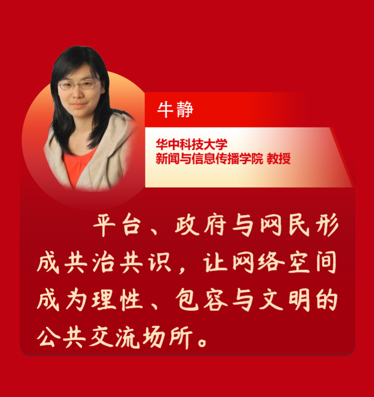 “网络不文明话语的治理不仅是技术问题,更是与社会文化与心理层面相联系的系统工程。只有平台、政府与网民形成共治共识,才能让网络空间真正成为理性、包容与文明的公共交流场所。”牛静建议,针对上述现象,应从平台治理、制度建设与公民教育三个层面协同推进。一是完善平台机制。各类社交媒体应建立文明交流规范,设置评论提示、延迟发布功能,鼓励用户在表达前进行自我反思。对恶意攻击、侮辱性言论实行分级处罚和公开警示,形成清晰可预期的约束机制。同时,优化算法推荐,降低情绪极化内容的传播权重,强化正向互动的可见度。二是健全制度与监管体系。应完善网络空间法治建设,明确平台与用户的责任边界,对网络暴力、诽谤、人身攻击等行为依法惩处。建立跨部门协同治理机制,形成公安、网信、司法及社会组织的联动响应。三是提升公众网络素养。教育部门应将网络文明与媒介素养纳入学校课程体系,培养青少年理性表达、尊重差异与自我约束的能力。研究表明,具有较高媒介素养用户更倾向于使用非攻击性语言,并能积极劝阻他人不文明行为。社会层面可推广“文明上网”志愿活动和“理性评论”倡议,引导网民形成自我规范意识。
