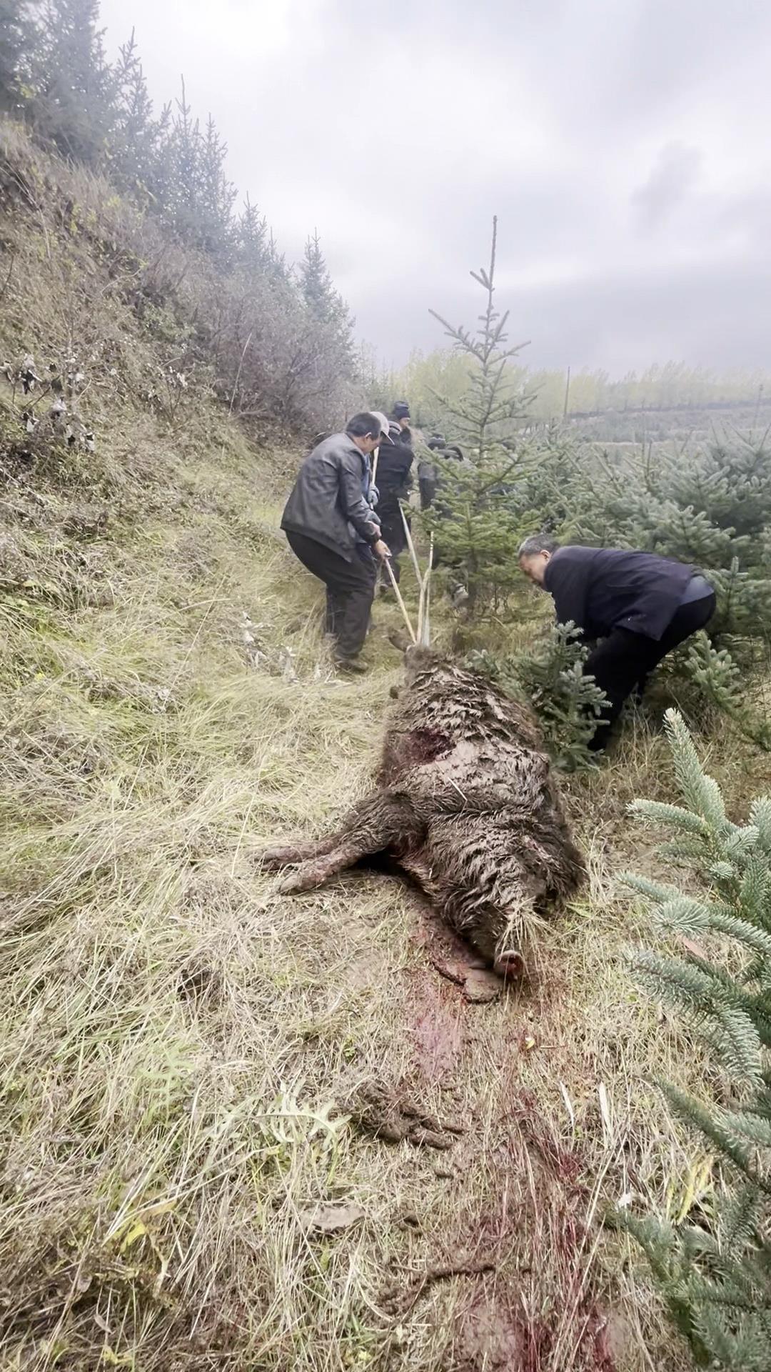 野猪被拖下山