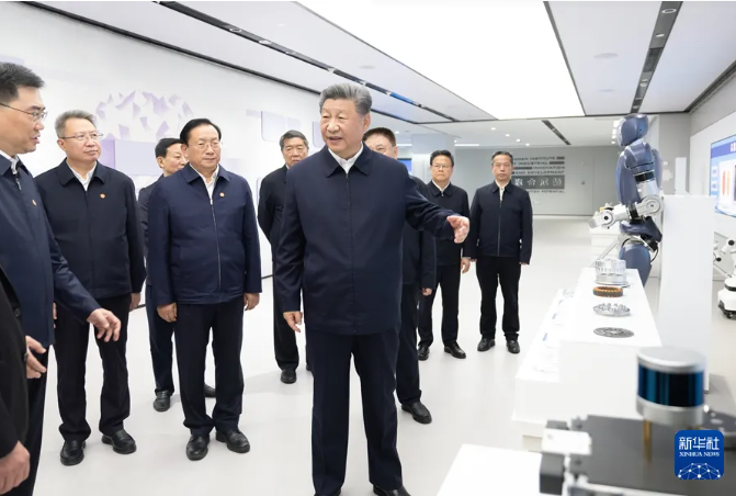 2024年11月5日下午,习近平总书记在武汉产业创新发展研究院考察。(图片来源 新华社)