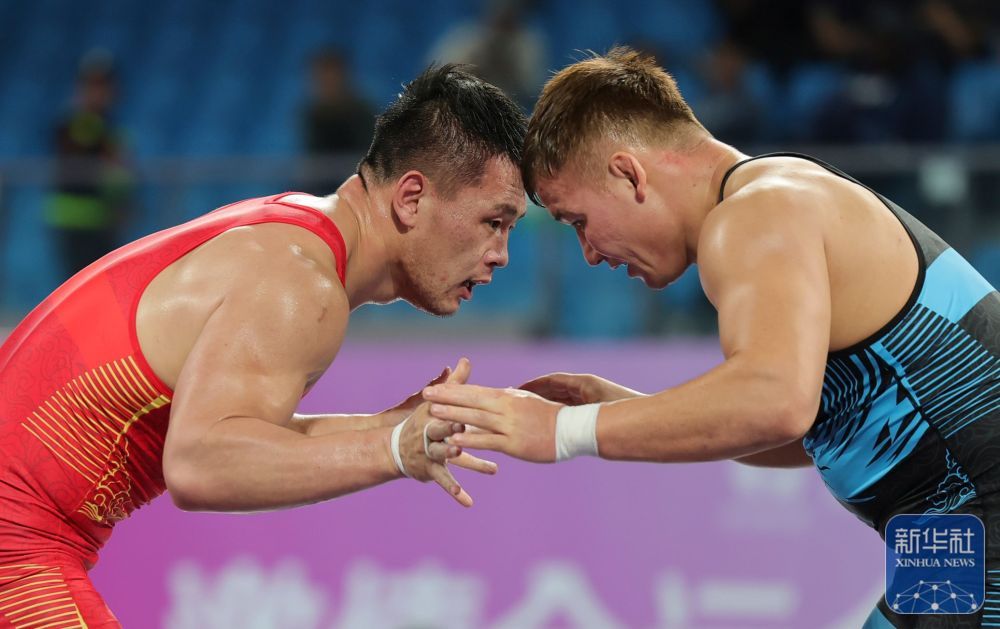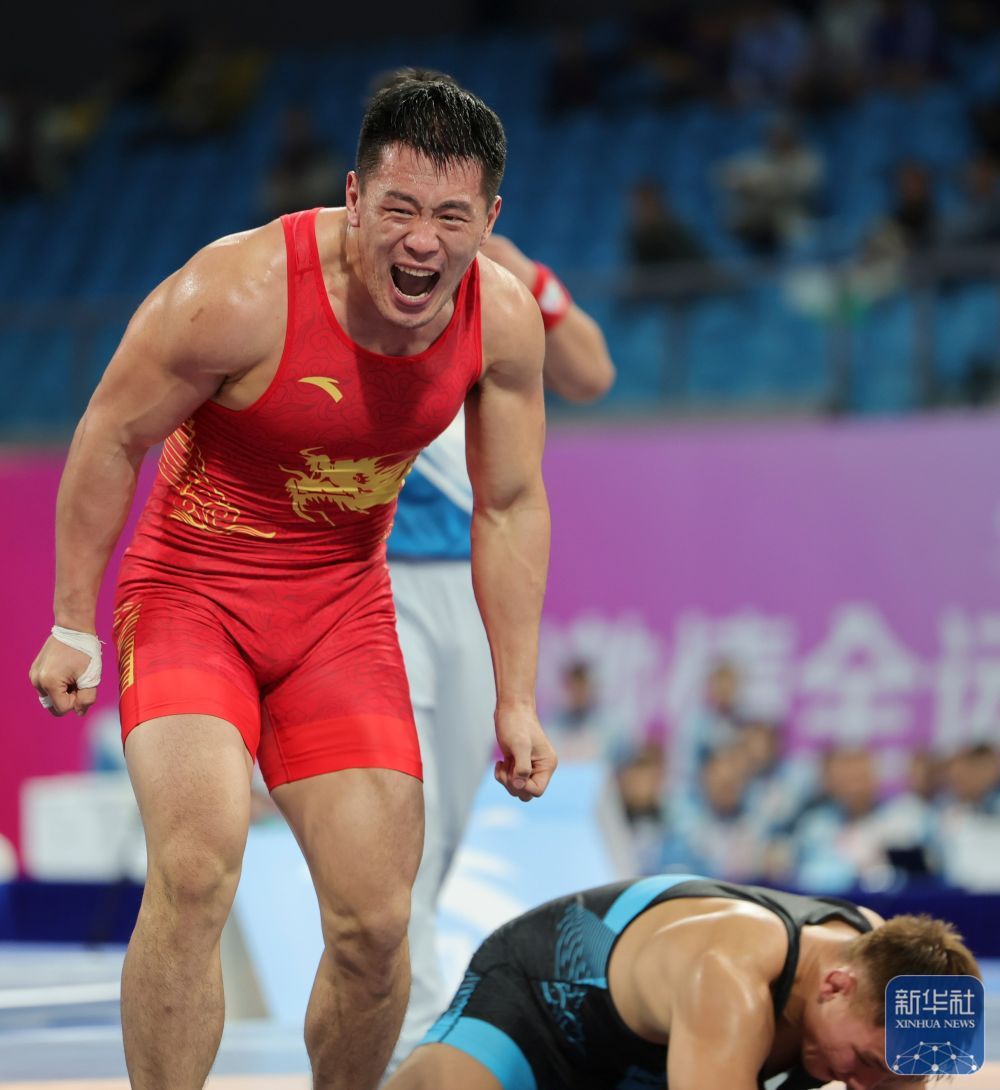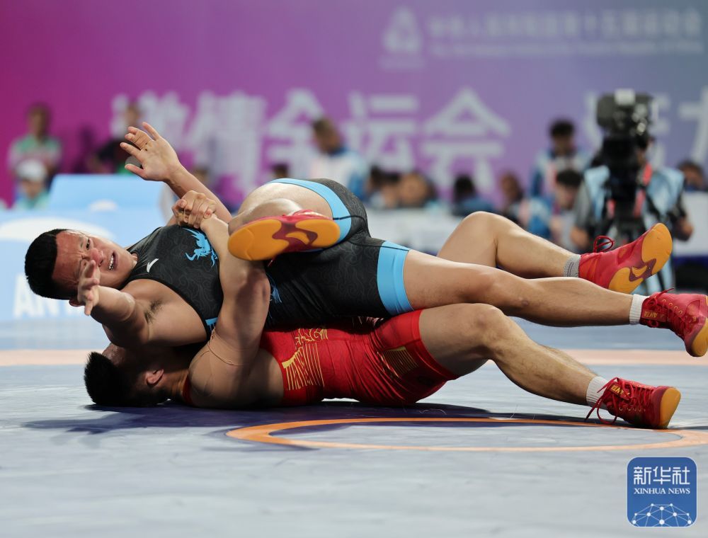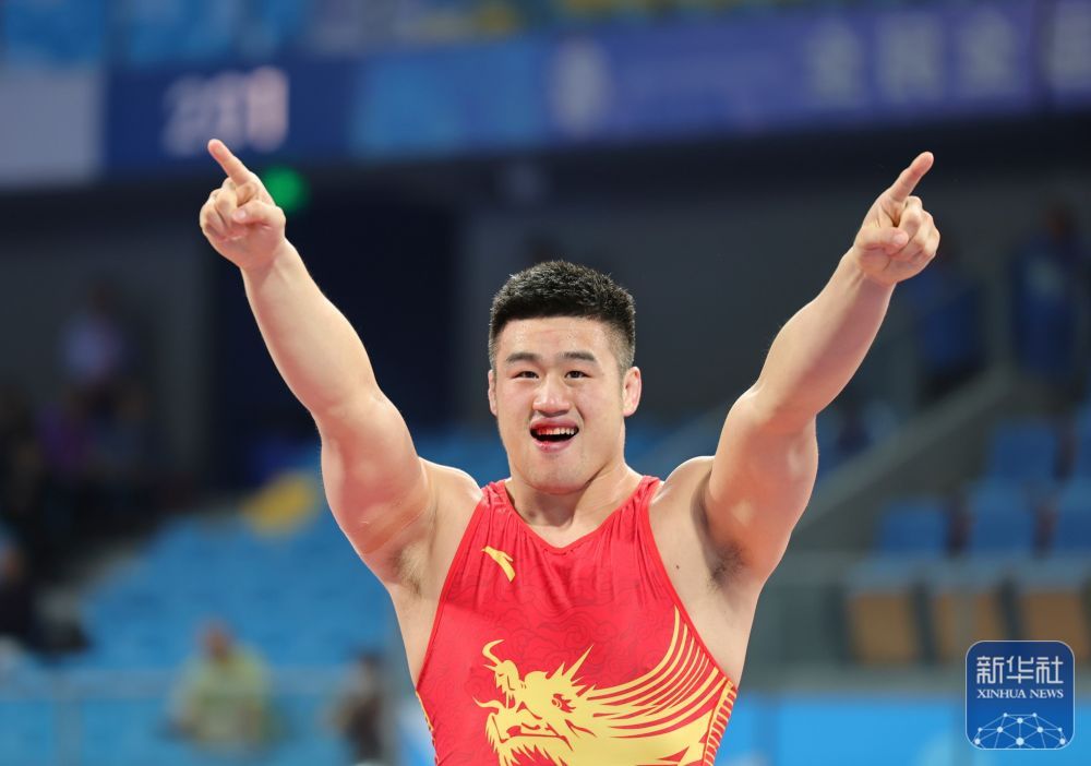 11月13日,第十五届全国运动会摔跤男子古典式97公斤级比赛在广东清远举行。重庆队选手李一鸣夺得冠军。