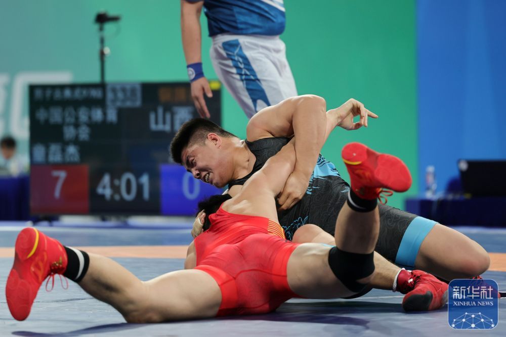 ↑ 中国公安体育协会队选手童磊杰(右)与山西队选手刘肖飞在铜牌赛中。最终,童磊杰获得季军。