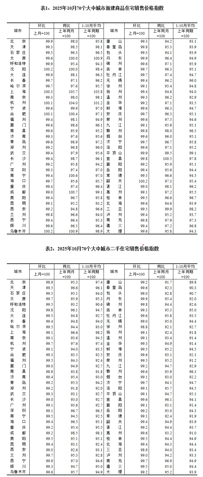 人民网北京11月14日电 (记者杨曦)国家统计局14日公布数据显示,2025年10月份,70个大中城市中,各线城市商品住宅销售价格环比和同比均下降。