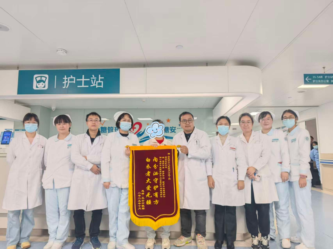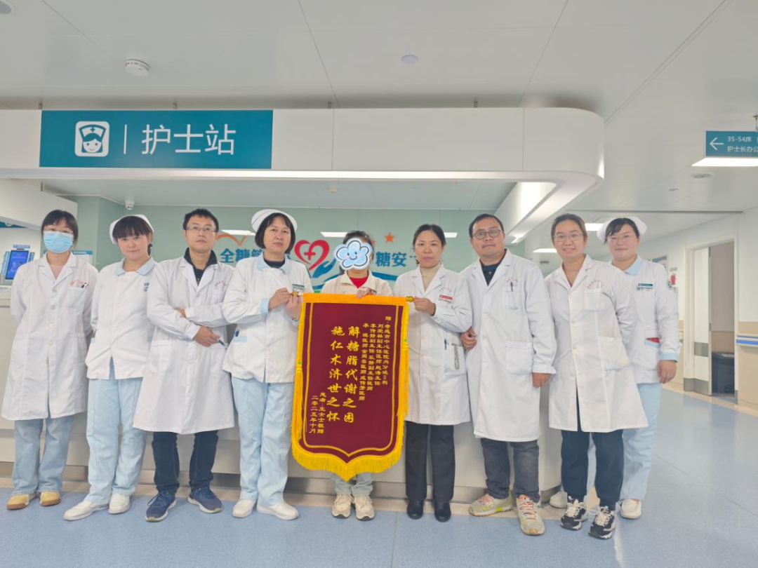 荆楚网(湖北日报网)讯(通讯员 周付华)“内分泌守护有方,白衣者大爱无疆”“解糖脂代谢之困,施仁术济世之怀”。近日,孝感市中心医院内分泌科II病区收到两面红底金字的锦旗。刚康复出院的王阿姨(化名)专程送来这份感谢,锦旗上的字迹,既是患者的真诚赞誉,也记录了一场救治糖尿病重症并发症患者的攻坚过程。