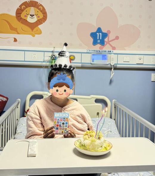 当精心准备的礼物递到眼前,当带着温度的手工生日帽戴在头上,辰辰紧锁的眉头瞬间舒展,眼睛里泛起惊喜的光芒。傍晚时分,《生日快乐》的旋律缓缓响起,徐燕君点亮生日蜡烛,辰辰双手合十默默许愿,在妈妈和医护人员的祝福声中吹灭蜡烛,脸上绽放出灿烂的笑容。