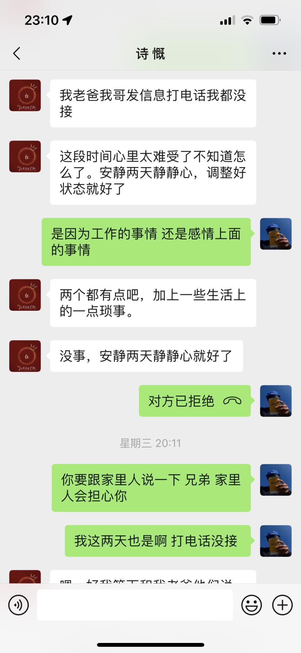 10月13日,廖某和朋友进行了最后一次微信聊天,之后联系就变得断断续续。10月22日晚上,家人通过廖某的发小给弟弟发消息,弟弟答应给父母回电,但家人迟迟没有接到电话。10月23日,家人通过另一位朋友以还钱的名义找弟弟,弟弟称手机快没电了,要求转到一个陌生的支付宝账号。家人怀疑与他们对话的已经不是本人了。