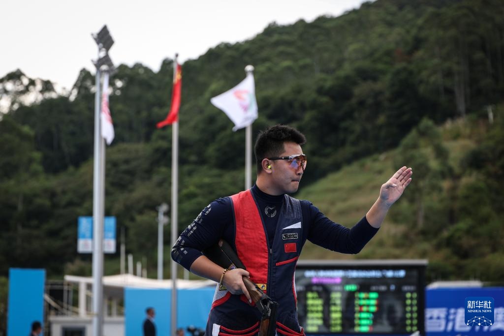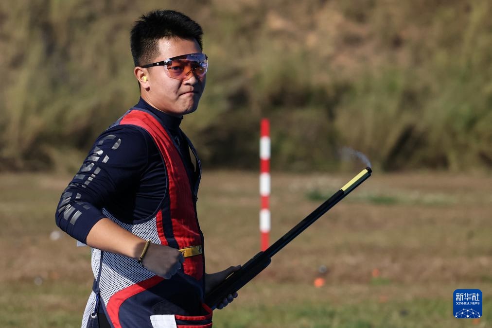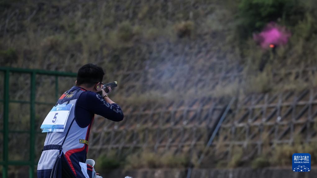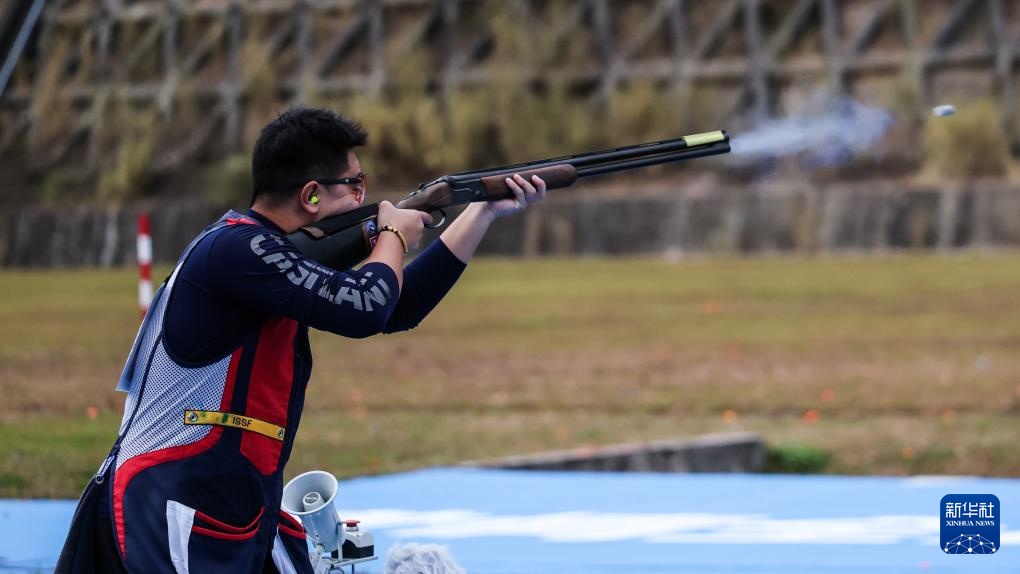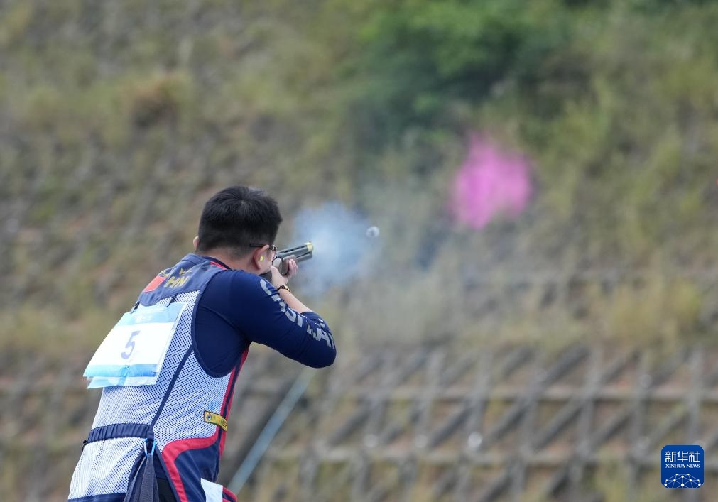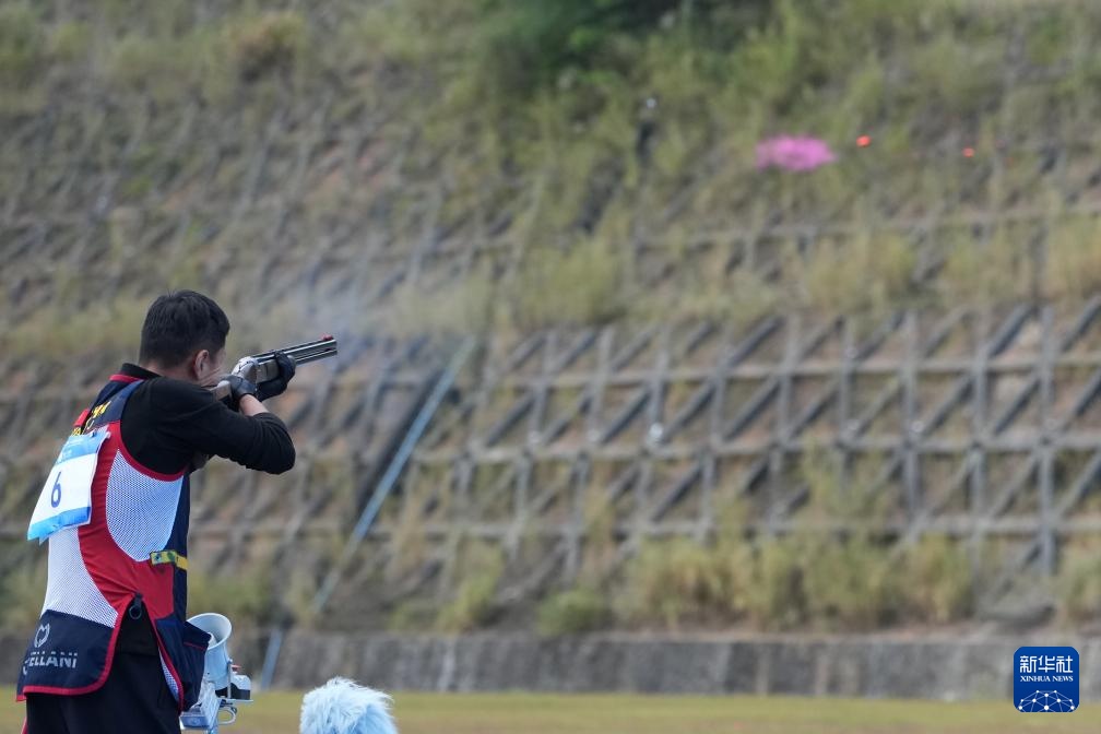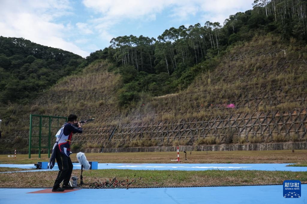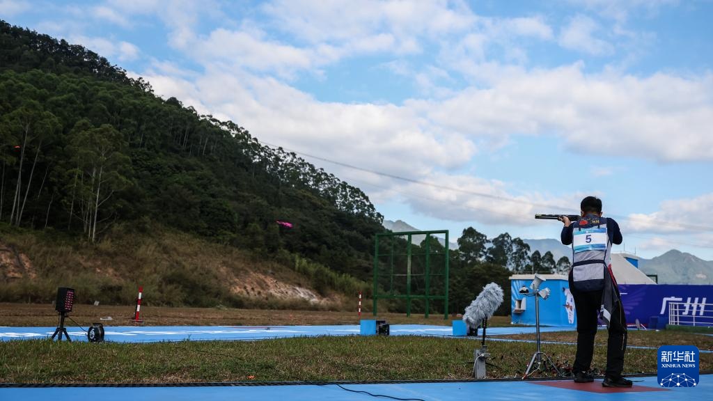 当日,第十五届全国运动会射击项目男子飞碟双向决赛在广州举行。
