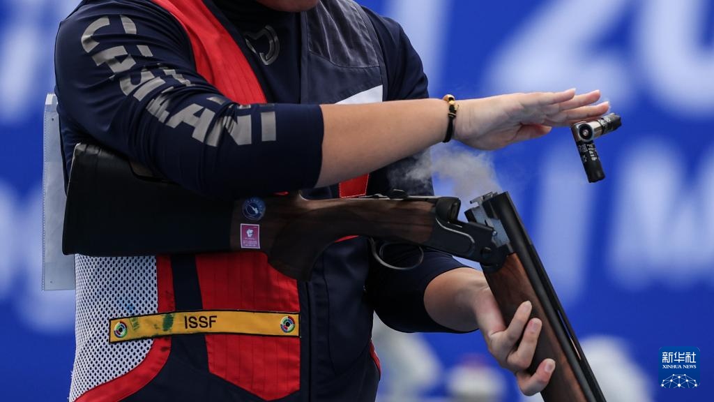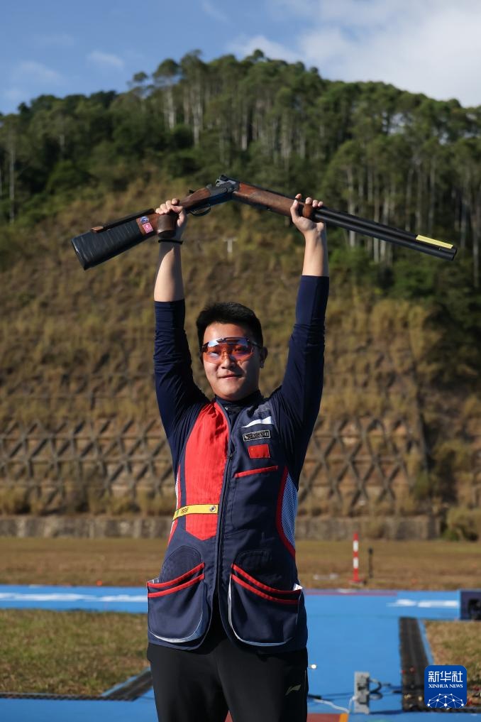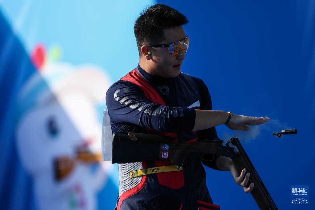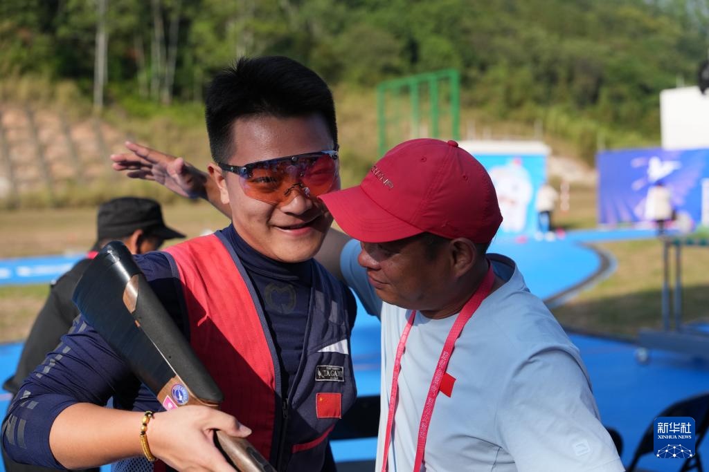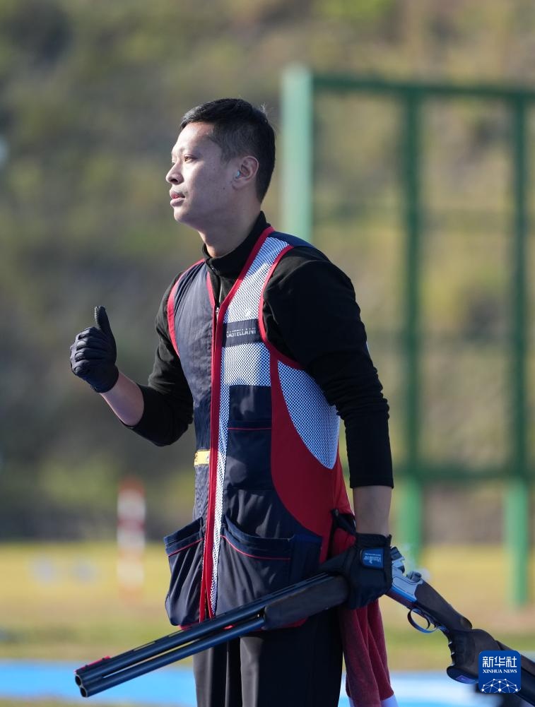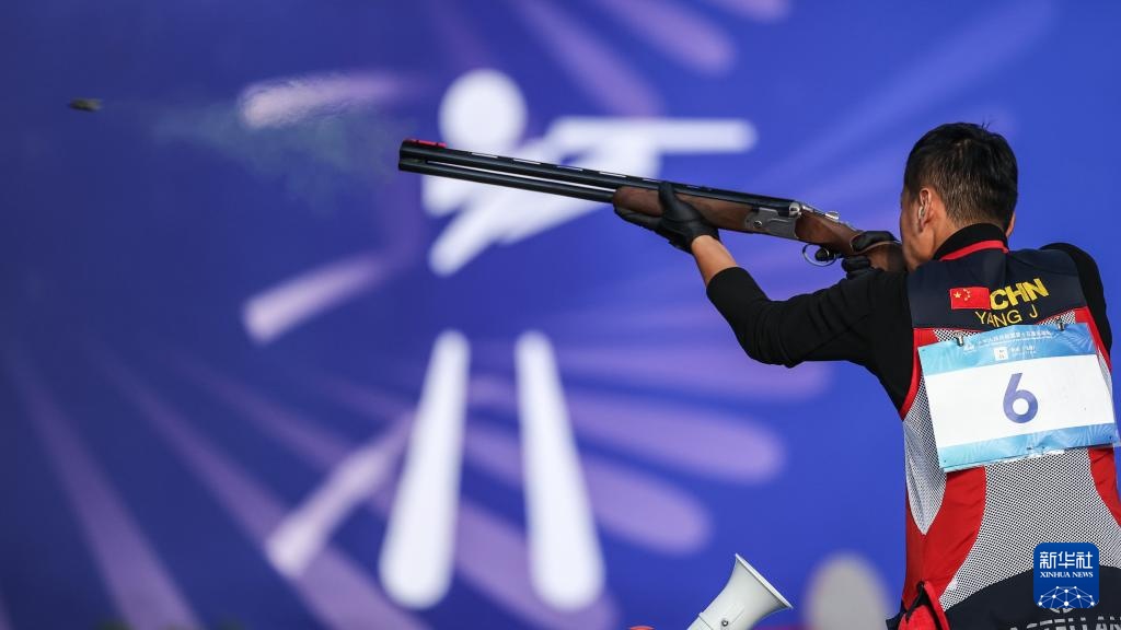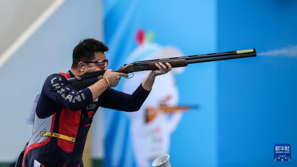 当日,第十五届全国运动会射击项目男子飞碟双向决赛在广州举行。