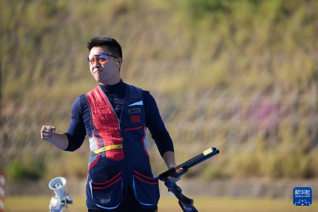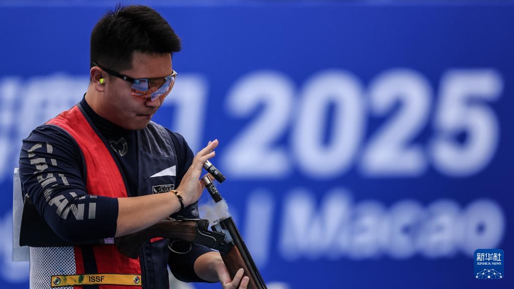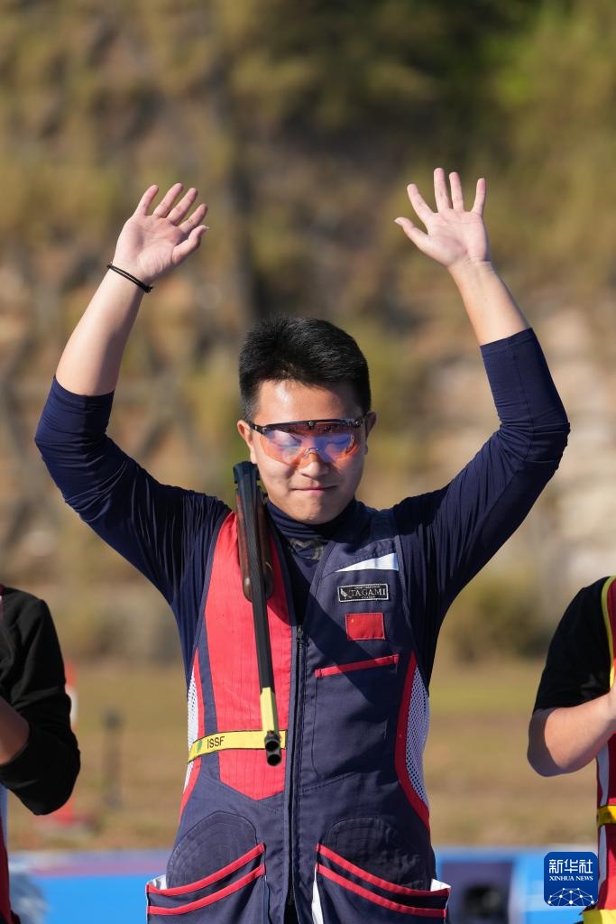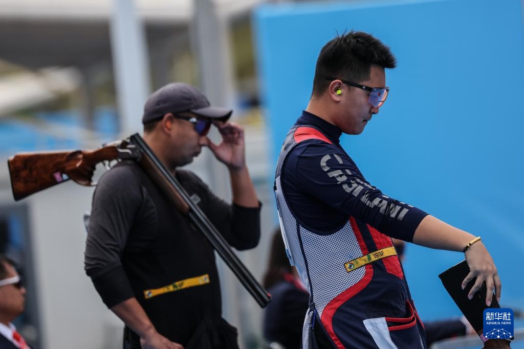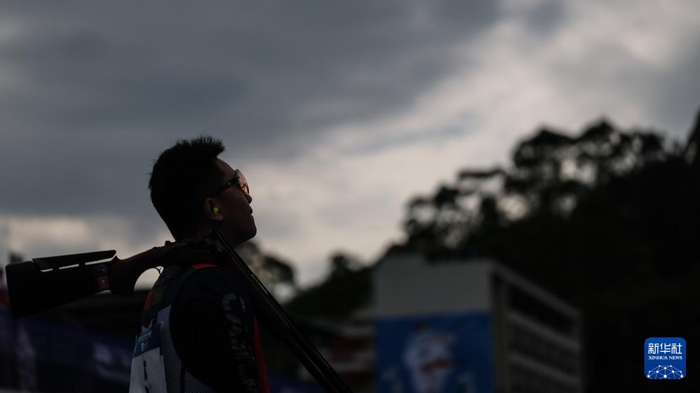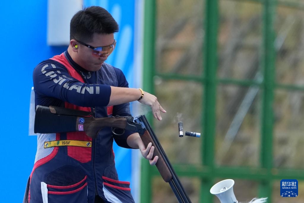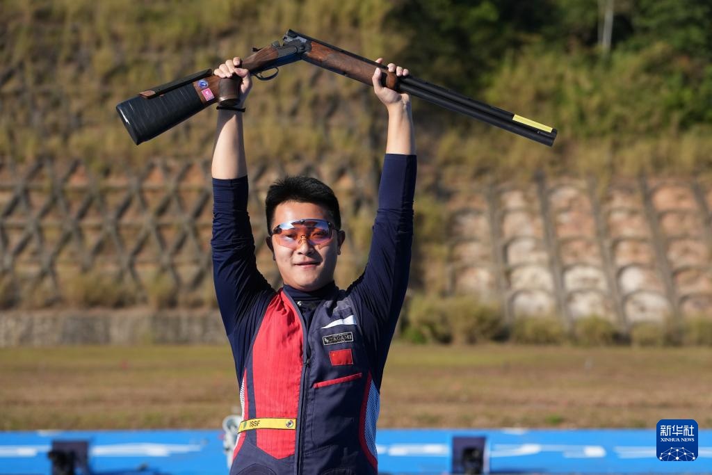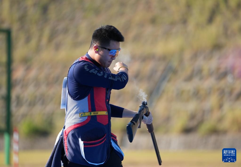 当日,第十五届全国运动会射击项目男子飞碟双向决赛在广州举行。