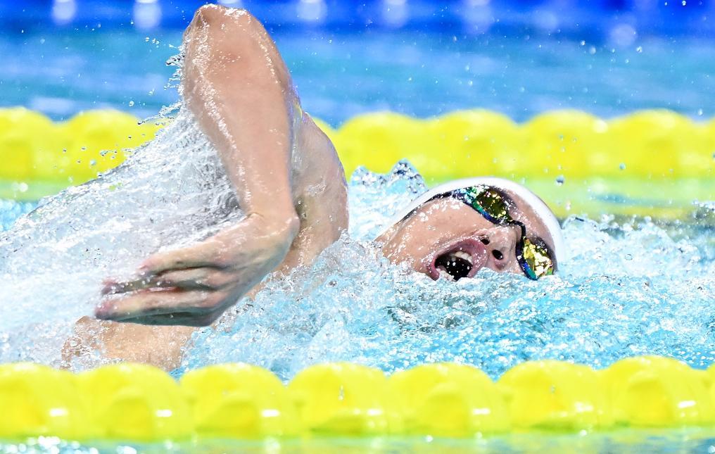 11月14日,浙江队选手汪顺在比赛中。新华社记者 陈益宸 摄