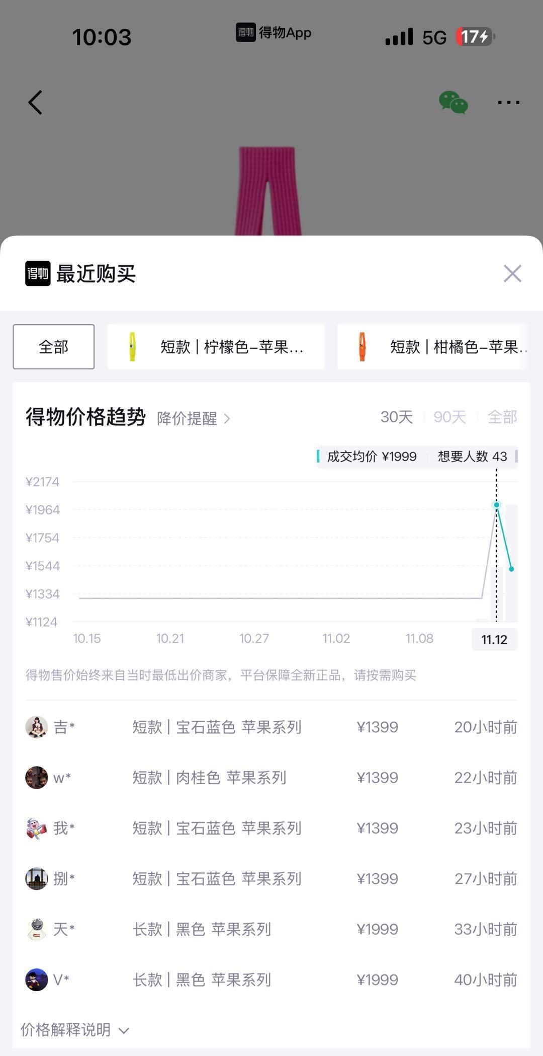 此次推出的iPhone Pocket分为短款和长款两个版本,短款售价1299元,提供柠檬色、柑橘色、紫色等八种色彩;长款售价1899元,拥有宝石蓝色、肉桂色、黑色三种选择。开售不久后,肉桂色长款便率先售罄,潮玩平台得物上,长款市场价已涨至2399元,短款涨至1699元,溢价幅度最高达500元。