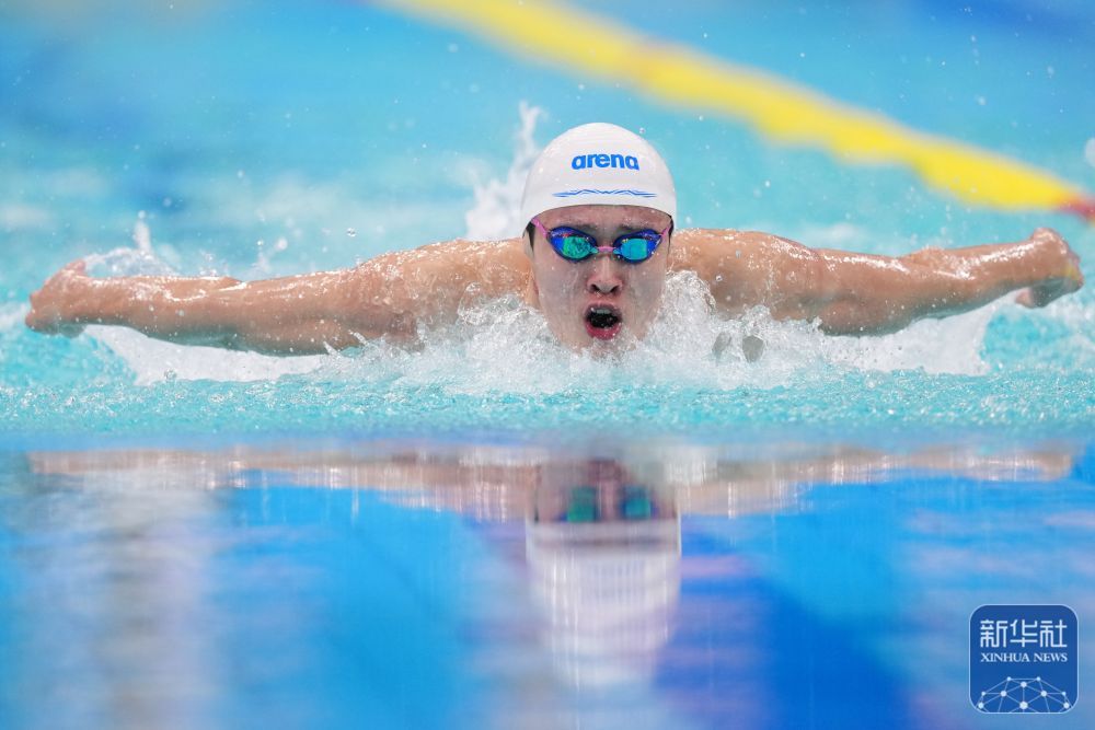 11月15日,第十五届全国运动会男子100米蝶泳预赛在深圳进行,湖北队选手孙佳俊晋级半决赛。