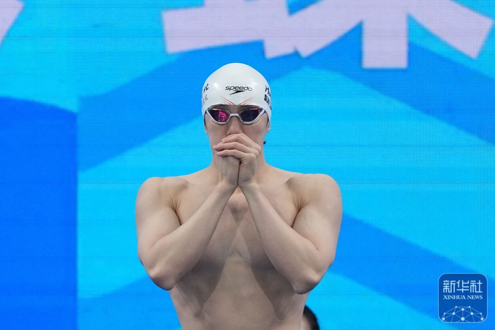 ↑ 湖北队选手孙佳俊在男子100米蝶泳预赛前。他晋级半决赛。