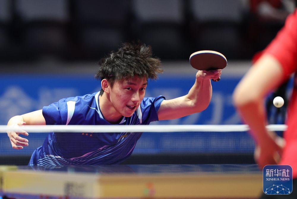 ↑ 周锦泉在比赛中回球。 新华社记者 刘续 摄