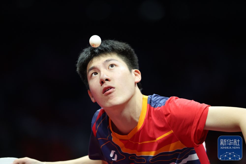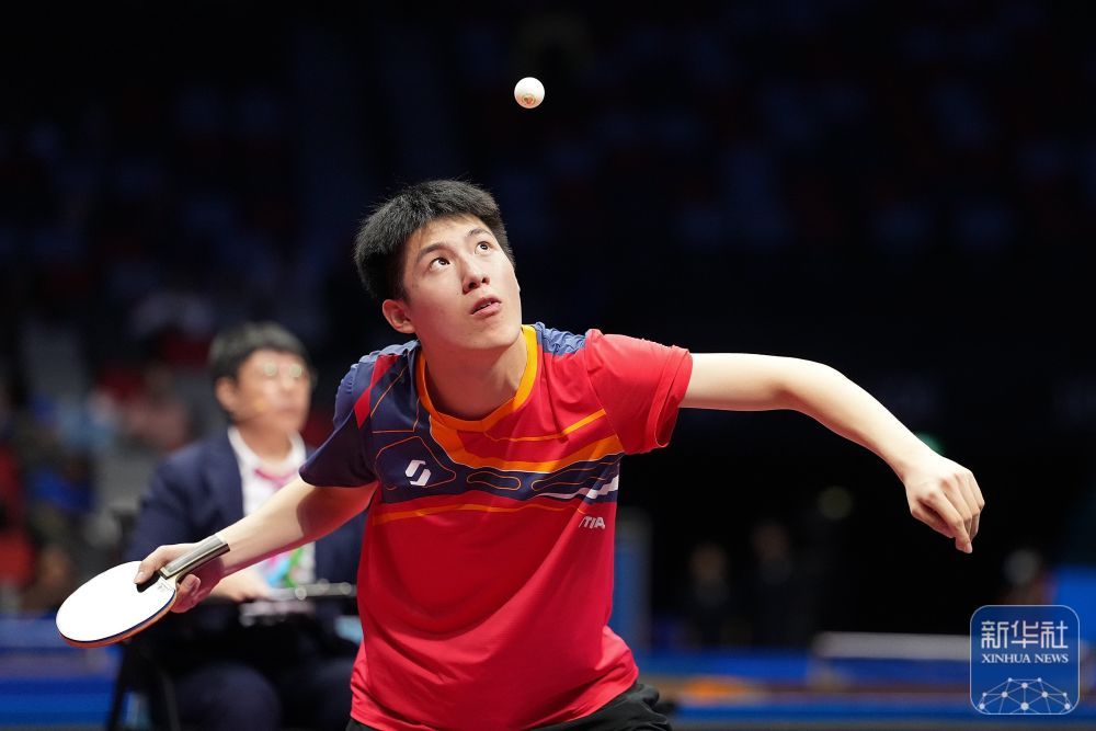 ↑ 温瑞博在比赛中发球。 新华社记者 梁旭 摄