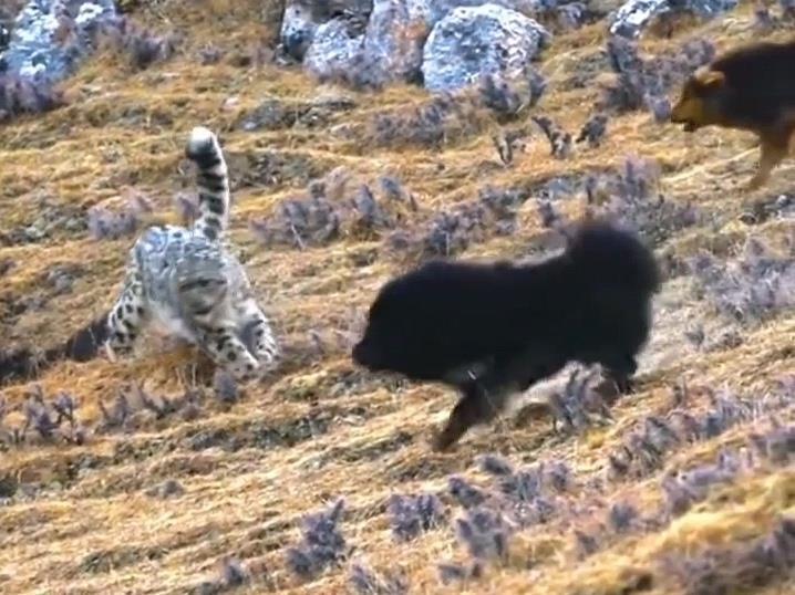 11月11日下午2时许,杨先生一行途经317国道那曲市尼玛县境内。“真是幸运!我们在目光所及的远处山坡上,看到一只雪豹和两只藏獒大战,但仅互相奔跑、吼叫、对峙了6秒左右,就各自跑开了,没有身体上的接触。”杨先生说,他用长焦镜头拍下了这一幕,因拍摄距离太远,画质一般,但他把该视频发布在社交平台上,仅两天时间播放量就接近200万人次。
