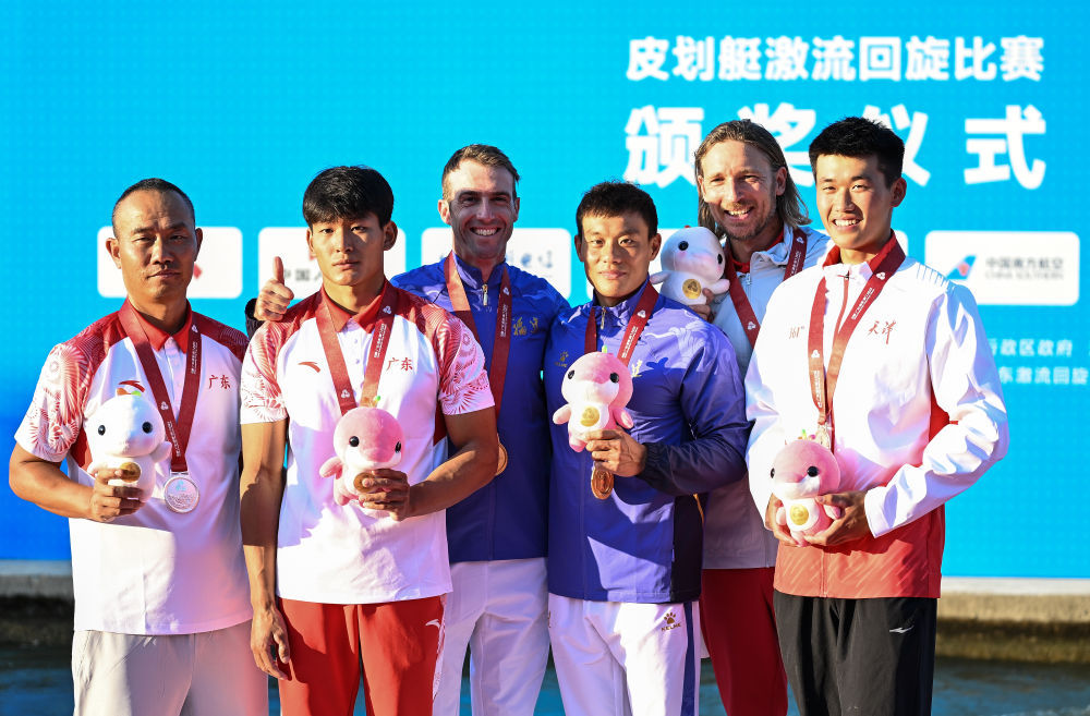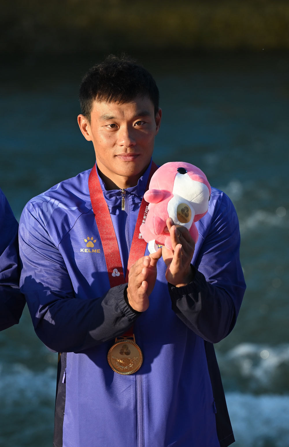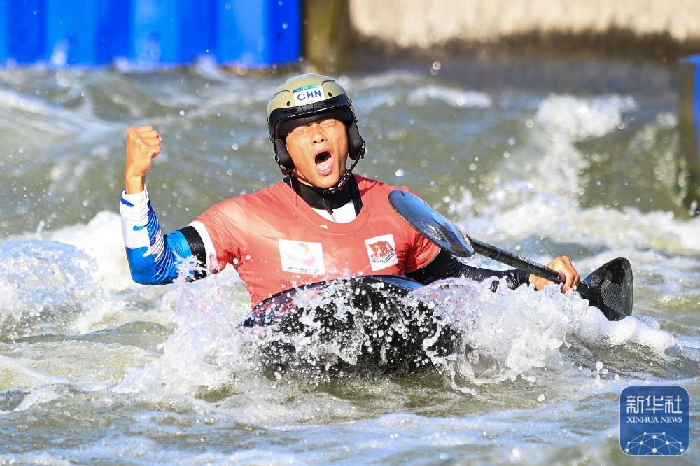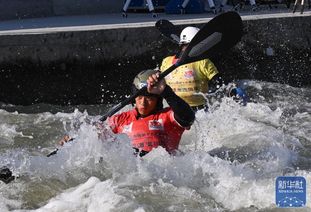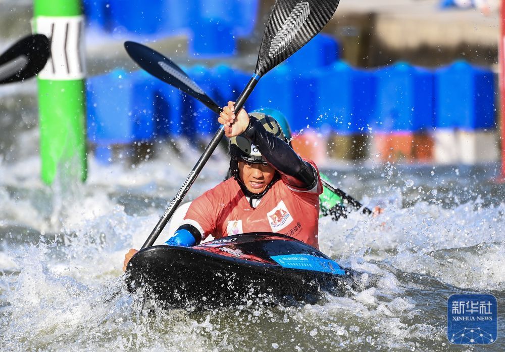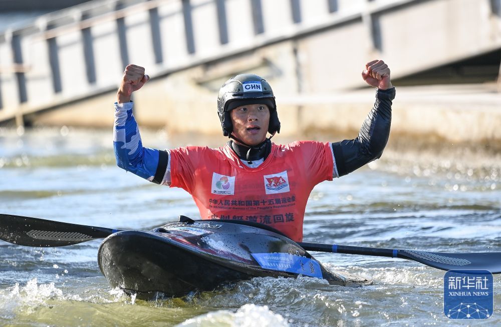 11月15日,在广州举行的第十五届全国运动会皮划艇激流回旋项目男子极限皮艇决赛中,福建队选手全鑫获得冠军,广东队选手胡兆山和天津队选手刘天昌分别获得亚军和季军。