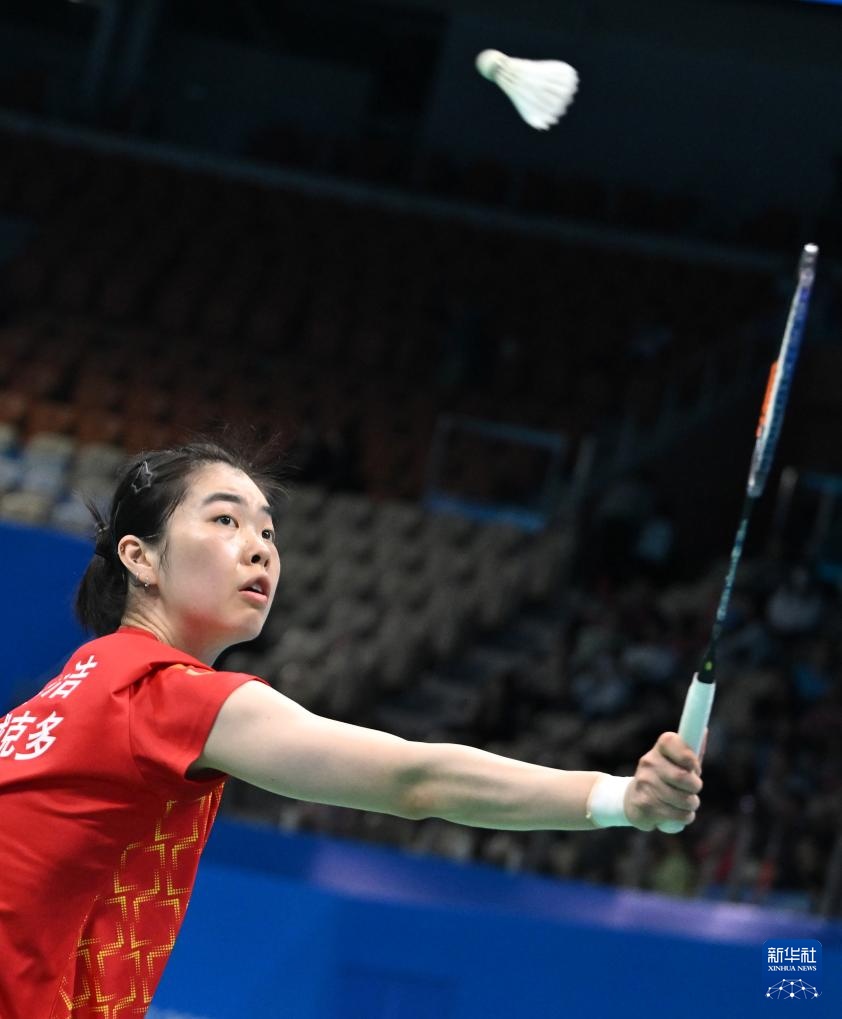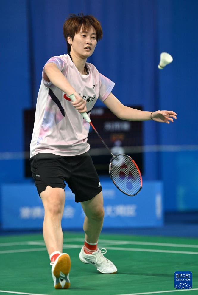 当日,第十五届全国运动会羽毛球女子单打十六分之一决赛在深圳举行。