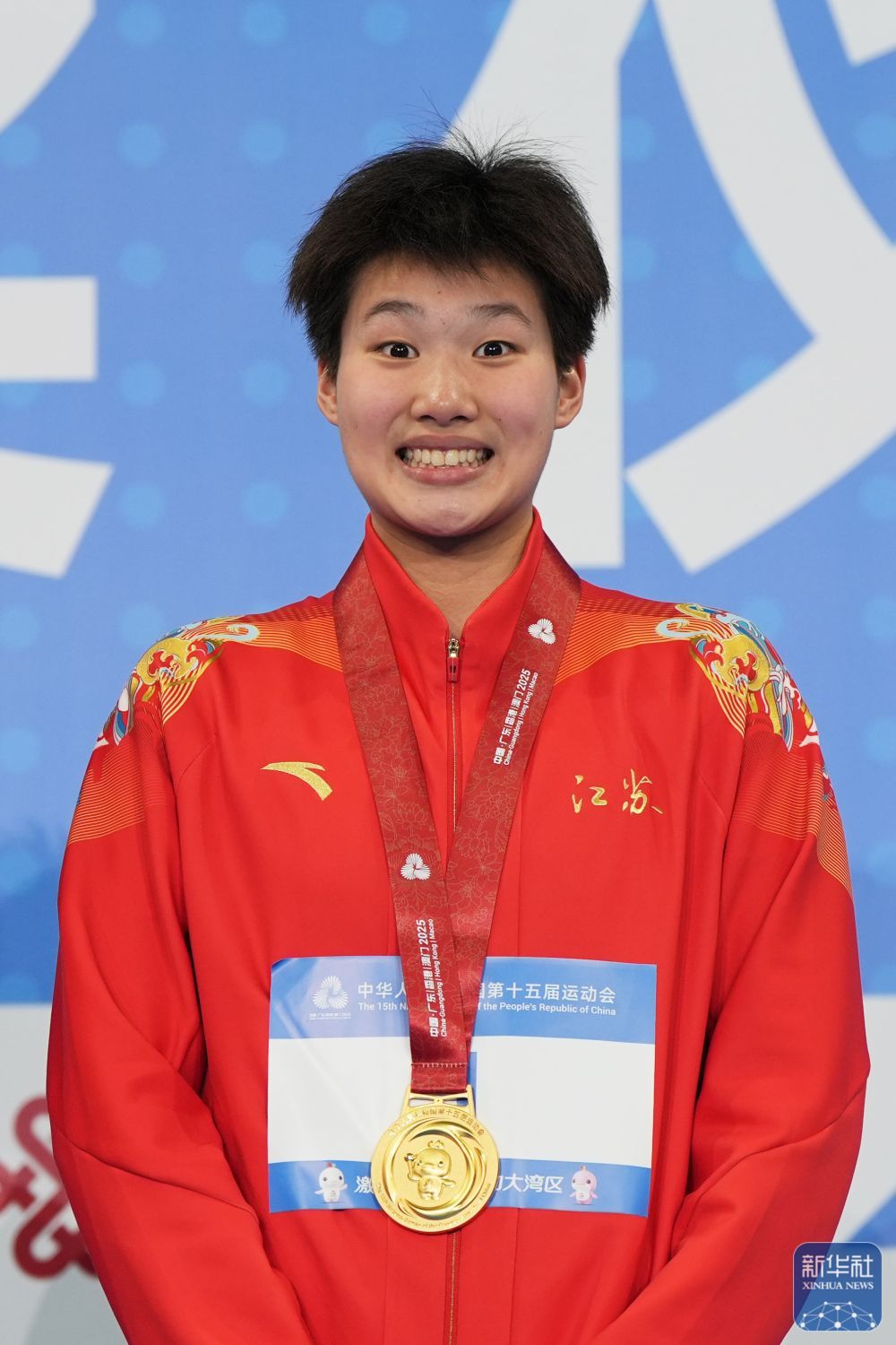 ↑ 冠军江苏队选手吕沁遥在颁奖仪式上。 新华社记者 夏一方 摄