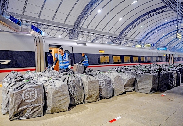 顺丰工作人员介绍,华中地区是电商订单核心发货地,粤港澳大湾区是重要消费市场,高铁的稳定性、及时性正好匹配时效需求,货物到站后可直接接驳分拨中心,全程衔接效率比航空运输高出三成,能让消费者更快收到来自中部地区的特色商品。