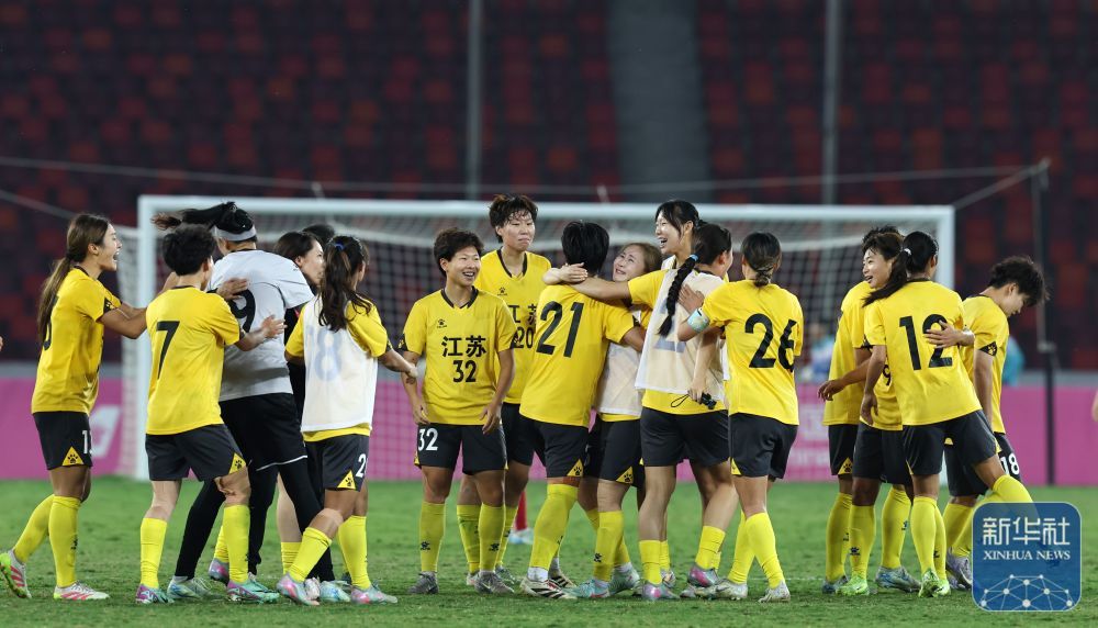 11月15日,在广东佛山进行的第十五届全国运动会足球女子成年组金牌赛中,江苏队1比0战胜湖北队,夺得冠军。