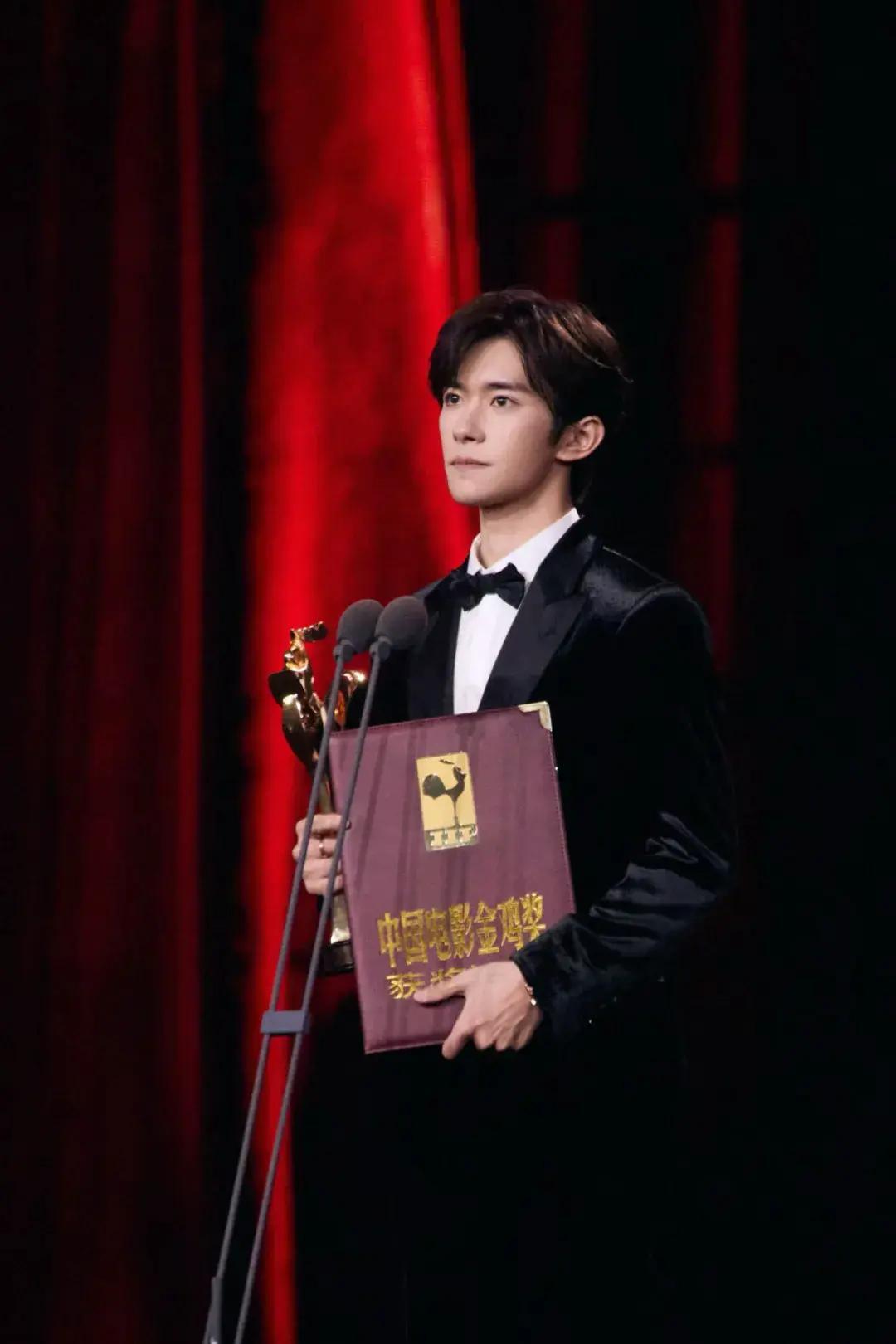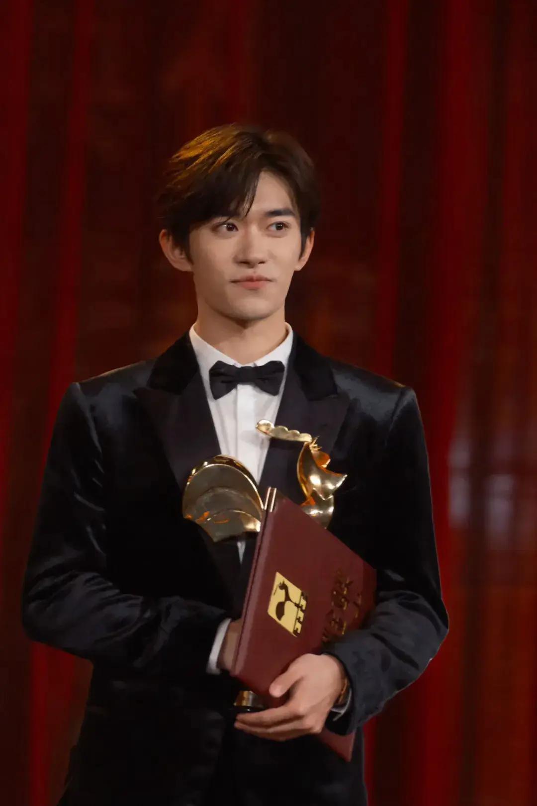 在与“竞争对手”大鹏、黄晓明等人拥抱后,易烊千玺上台领取了自己的第一座金鸡奖最佳男主角奖杯,并在台上发表了真挚的获奖感言。还不到25岁的他,回顾了自己已经长达12年的职业生涯,他说,12岁时自己被选中出道,一直在高关注度、高压的工作中生活,“很荣幸接触到演员这个行业,未来道阻且长,希望能通过我的努力和作品,赢得观众发自内心的尊重。”