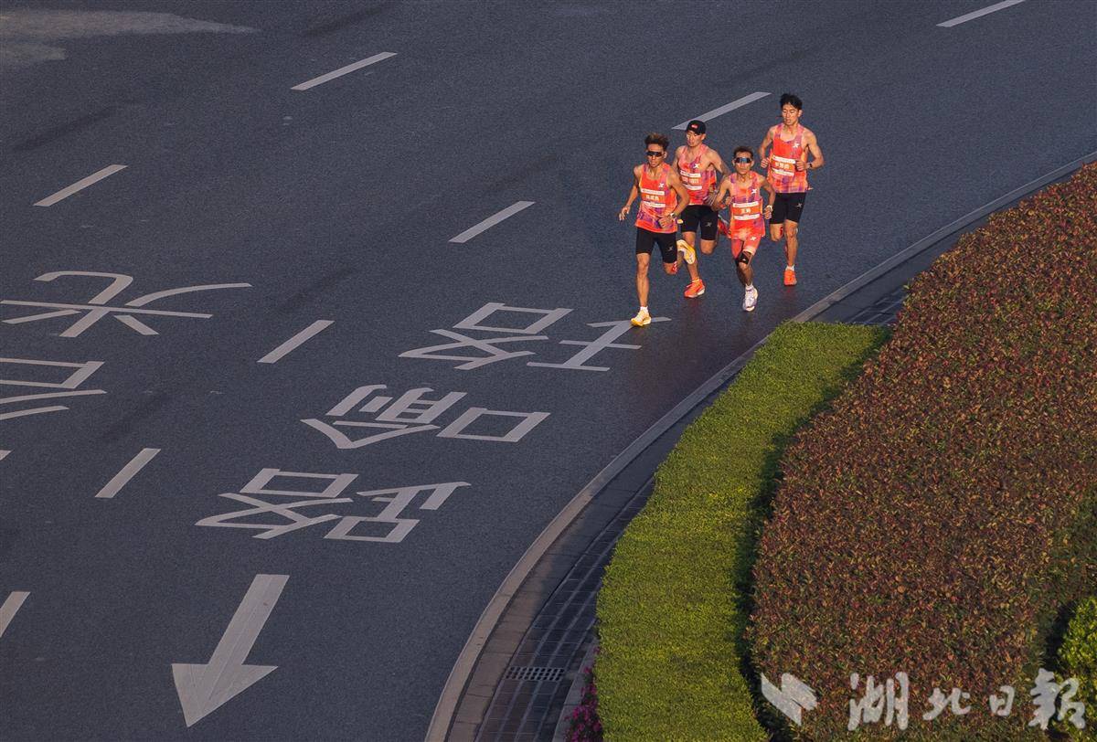 第一梯队选手跑过武汉光谷星河广场。