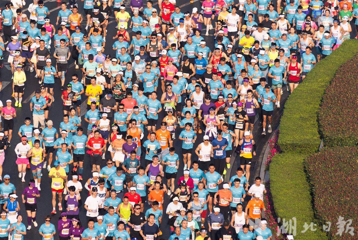 11月16日上午8时,华工科技2025光谷马拉松在武汉东湖高新区鸣枪开跑,赛事设马拉松(7000人)、半程马拉松(6000人)两个项目,共1.3万名跑者参赛。(湖北日报全媒记者 柯皓 摄)