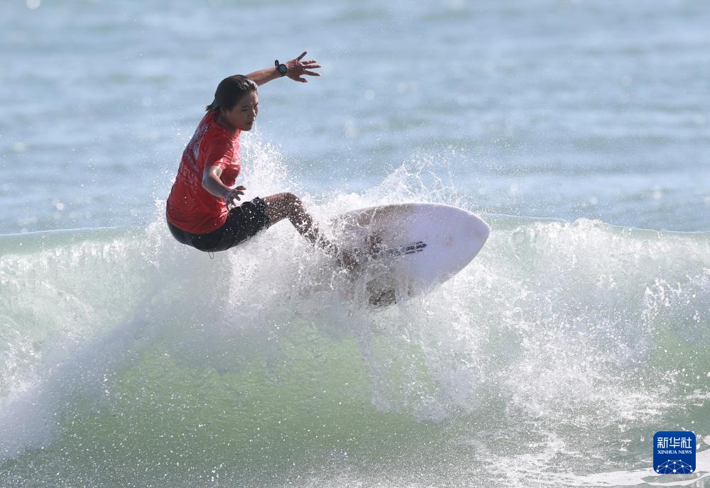 当日,在广东南澳举行的第十五届全国运动会冲浪女子短板铜牌赛中,海南队选手邓雪莹战胜四川队选手张雨婷,获得铜牌。