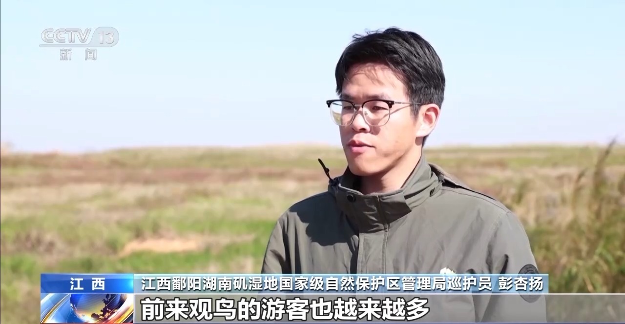 江西鄱阳湖南矶湿地国家级自然保护区管理局巡护员 彭杏扬:现在交通方便,候鸟来了之后,前来观鸟的游客也越来越多。劝导游客文明观鸟,不要踩踏湿地,给冬候鸟营造一个安全稳定的栖息环境。