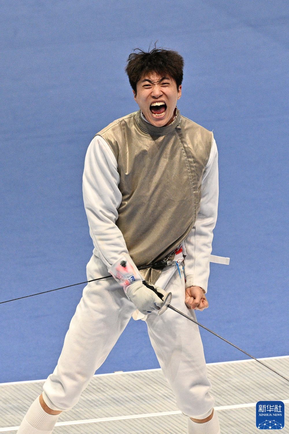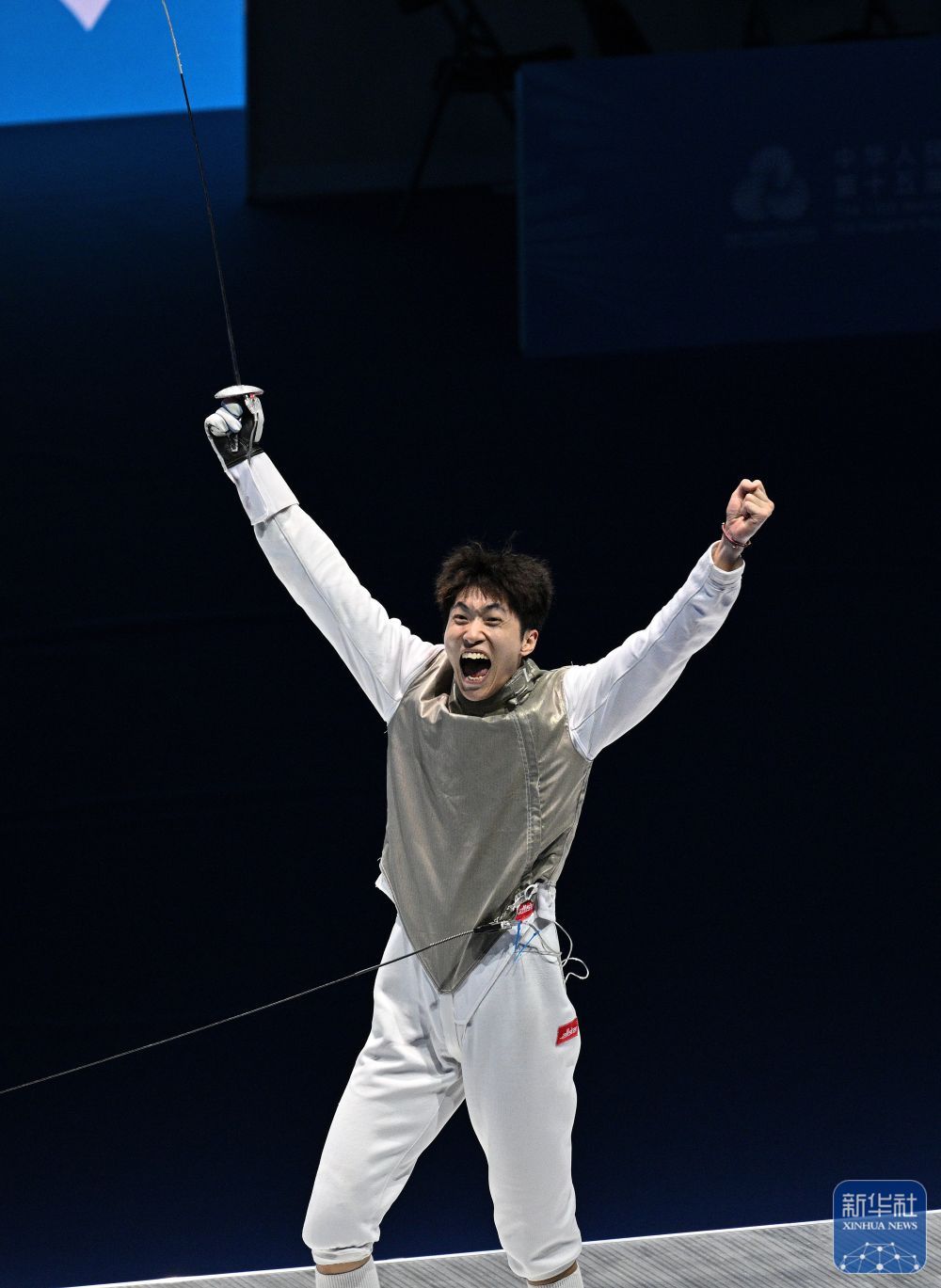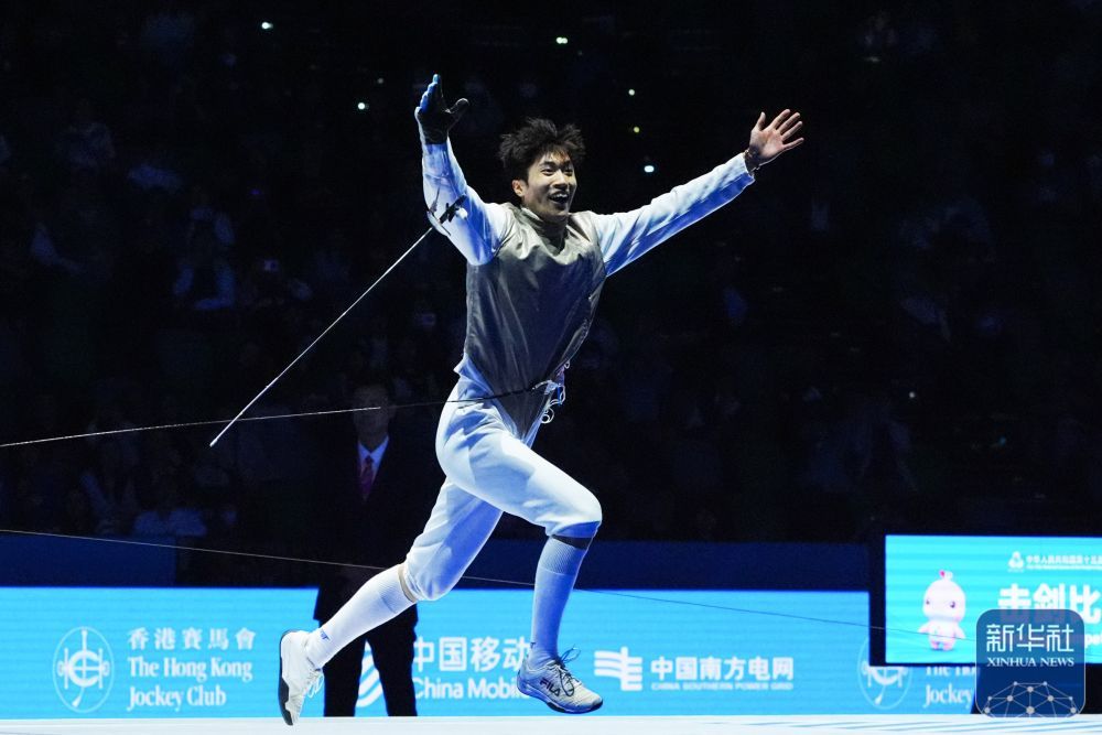 11月16日,在香港进行的第十五届全国运动会击剑男子花剑个人金牌赛中,福建队选手许杰15比13战胜江苏队选手邹天一,夺得冠军。