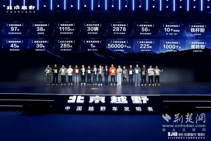 北汽集团董事长张建勇为BJ40增程“车主之最”用户颁奖。16位获奖用户包括等车时间最久用户、行驶里程最长用户、一箱油单次跑出最远里程用户等,他们用一个个动人的故事,让BJ40增程不仅仅是一台车,更成为一种文化,一种精神符号。