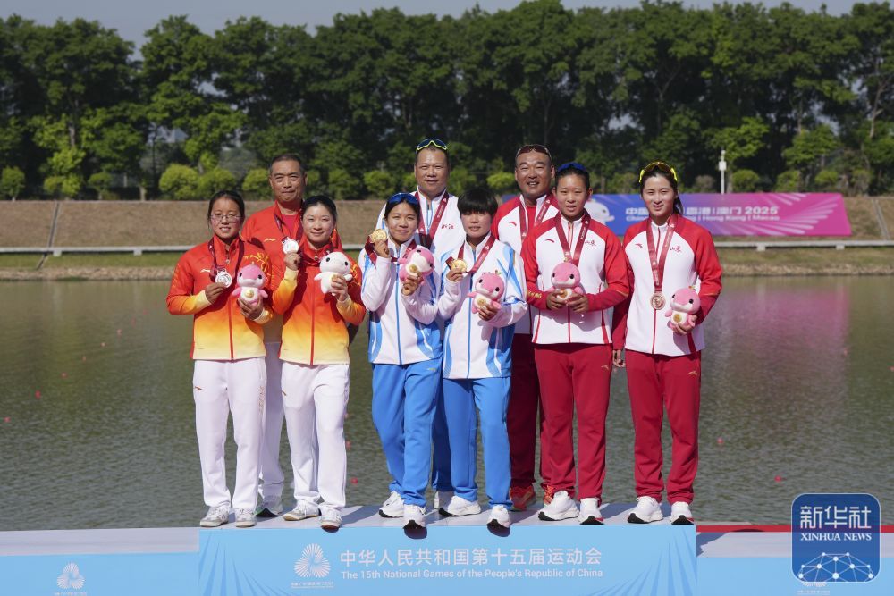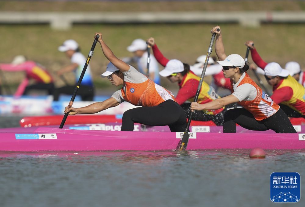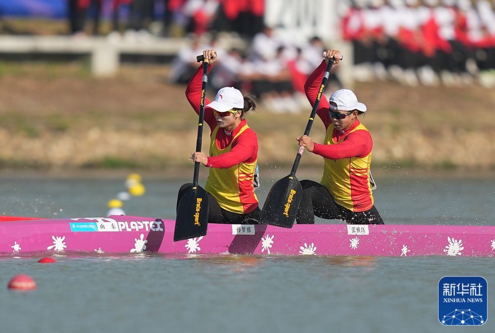 11月17日,第十五届全国运动会皮划艇静水项目女子500米双人划艇决赛在广州举行。