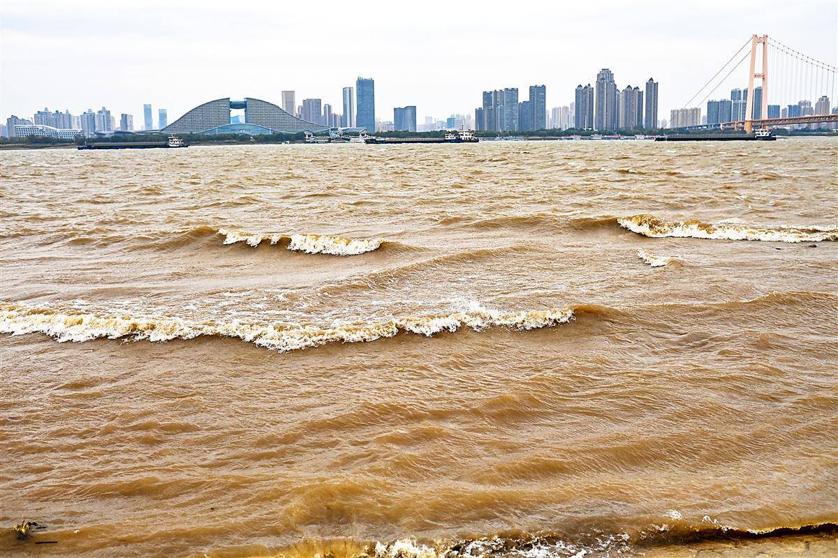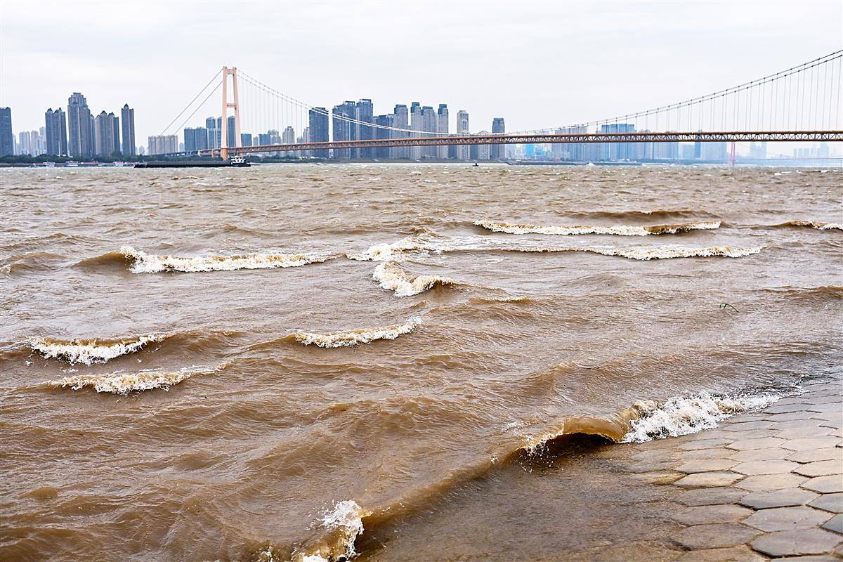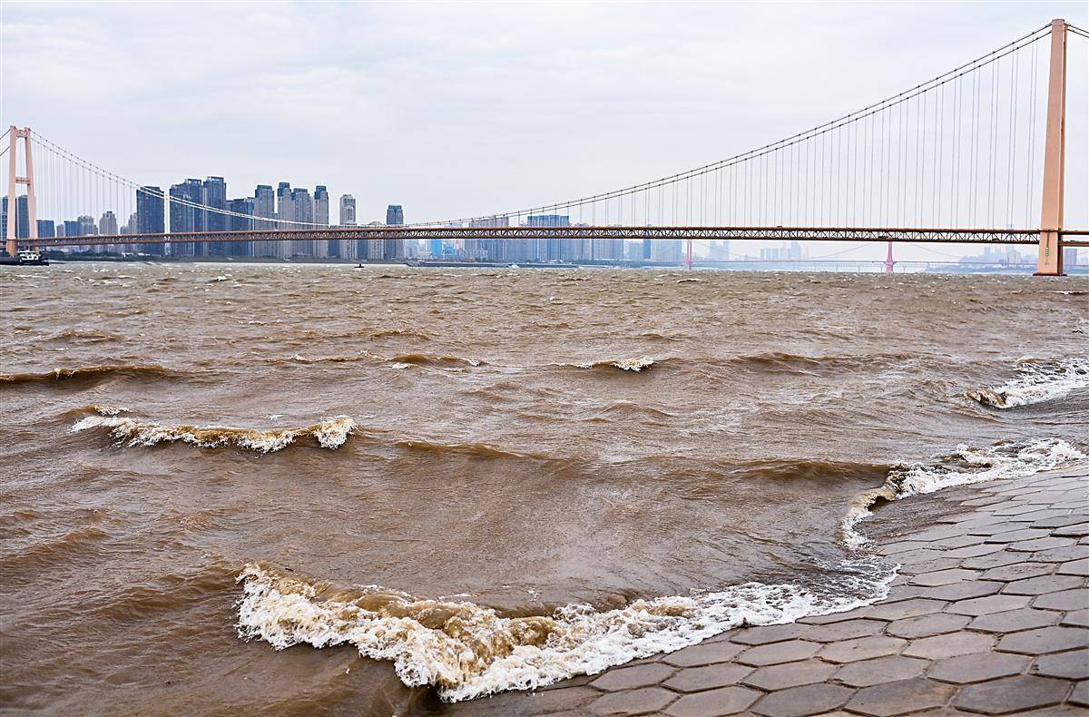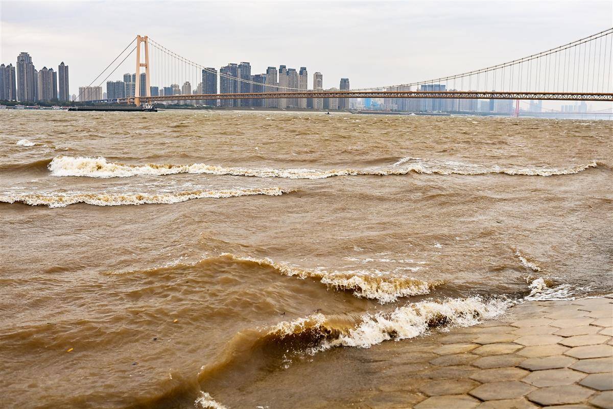 11月17日,武汉正经历今年秋冬首场强寒潮天气,一场大风来袭,杨泗港大桥附近的长江江面浪花滚滚,似海一样壮阔。