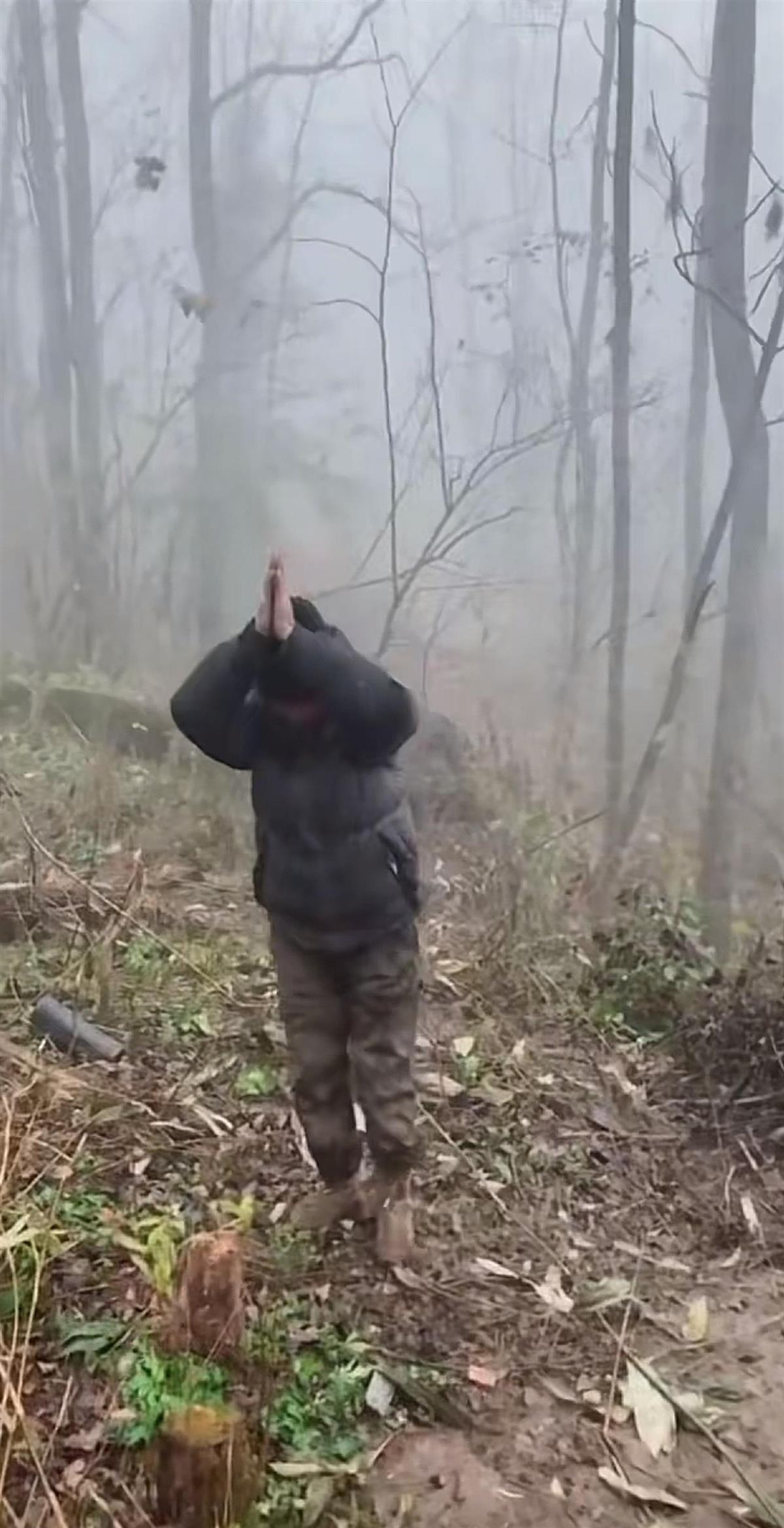 17日上午,情绪已经缓和下来的文车车再次见到了眉县文旅的工作人员,他不断用家乡话和“娘家人”交流。临走时,文车车起身将工作人员送走,双手合十鞠躬表示感谢,目送“娘家人”下山。