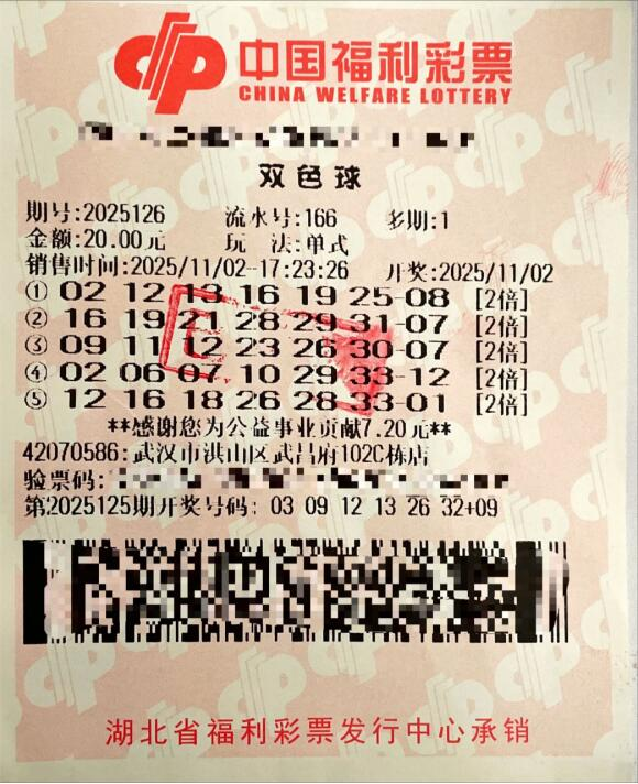 林先生说他平时投注偏爱机选,还经常变换购彩站点。双色球第2025126期开奖当日,他在南湖附近办事时,偶然走进一家福彩站点,先投注了几注3D,接着让销售员随机打5注双色球,选了2倍投注。