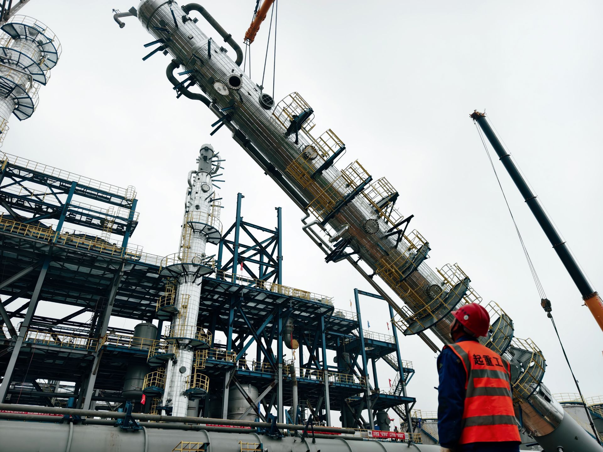 荆楚网(湖北日报网)讯(通讯员 赵连国)11月8日,由中国化学工程所属中国五环工程有限公司总承包建设的庆阳同欣50万吨/年轻烃深加工项目核心装置——12万吨/年1,4-丁二醇(BDO)装置轻组分塔顺利完成吊装,项目全面进入设备安装攻坚阶段。
