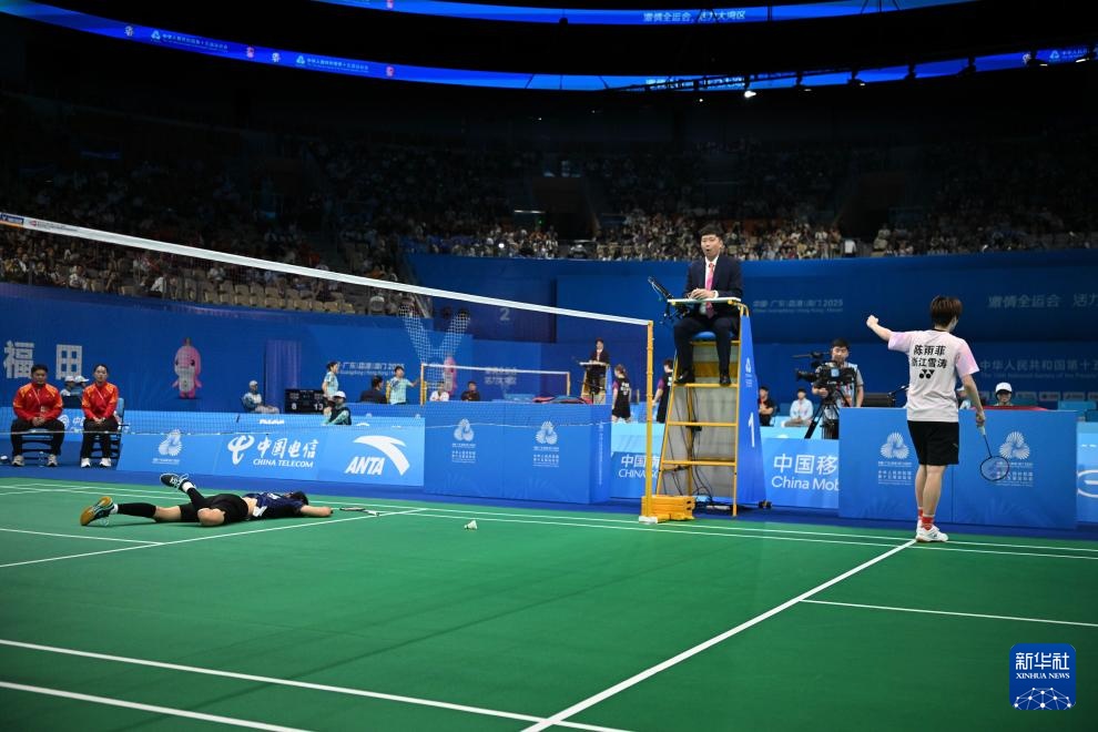当日,第十五届全国运动会羽毛球女子单打四分之一决赛在广东深圳举行。
