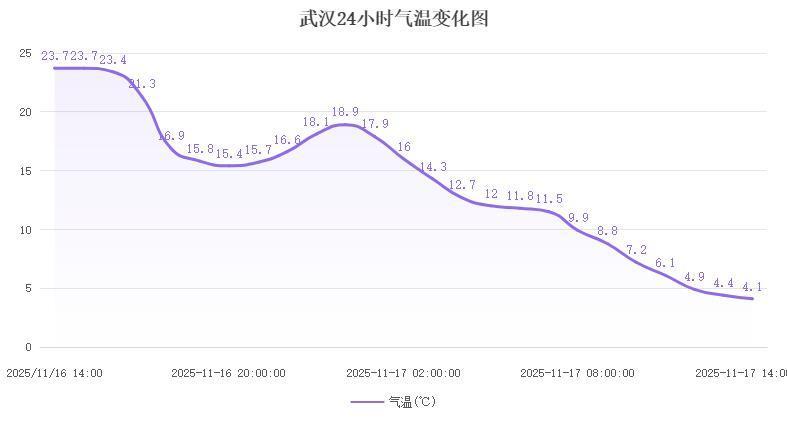 今天的气温也在开倒车。如果说清晨8时许,气温8-9℃,武汉的冷大家还可以接受,随着气温继续下降,17时气温仅2-3℃,冰风伴着冷雨扑面而来,体感温度已低于0℃,那真是冻得噻!