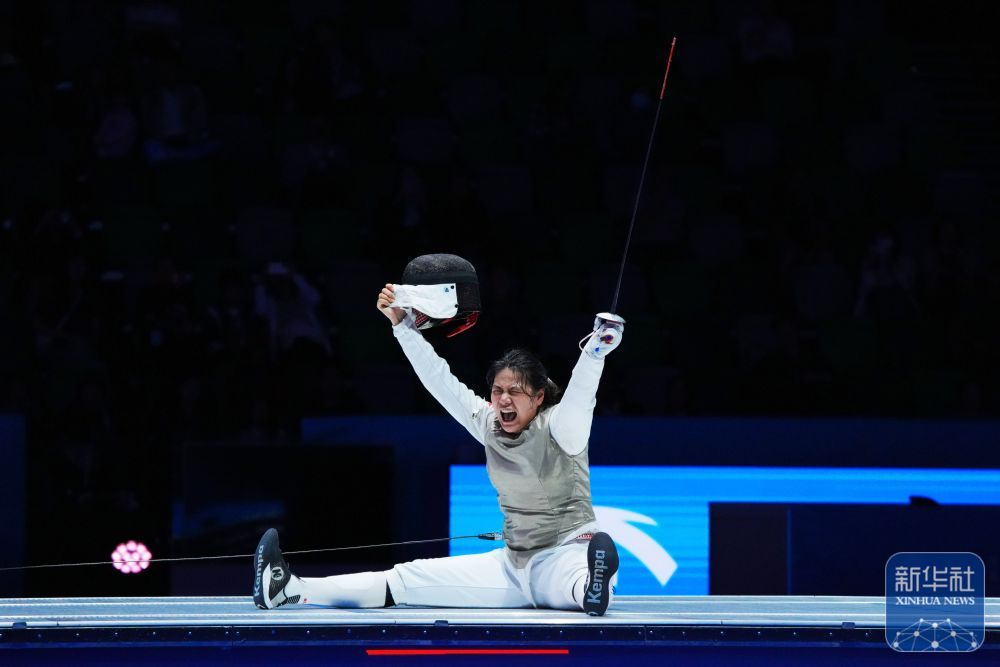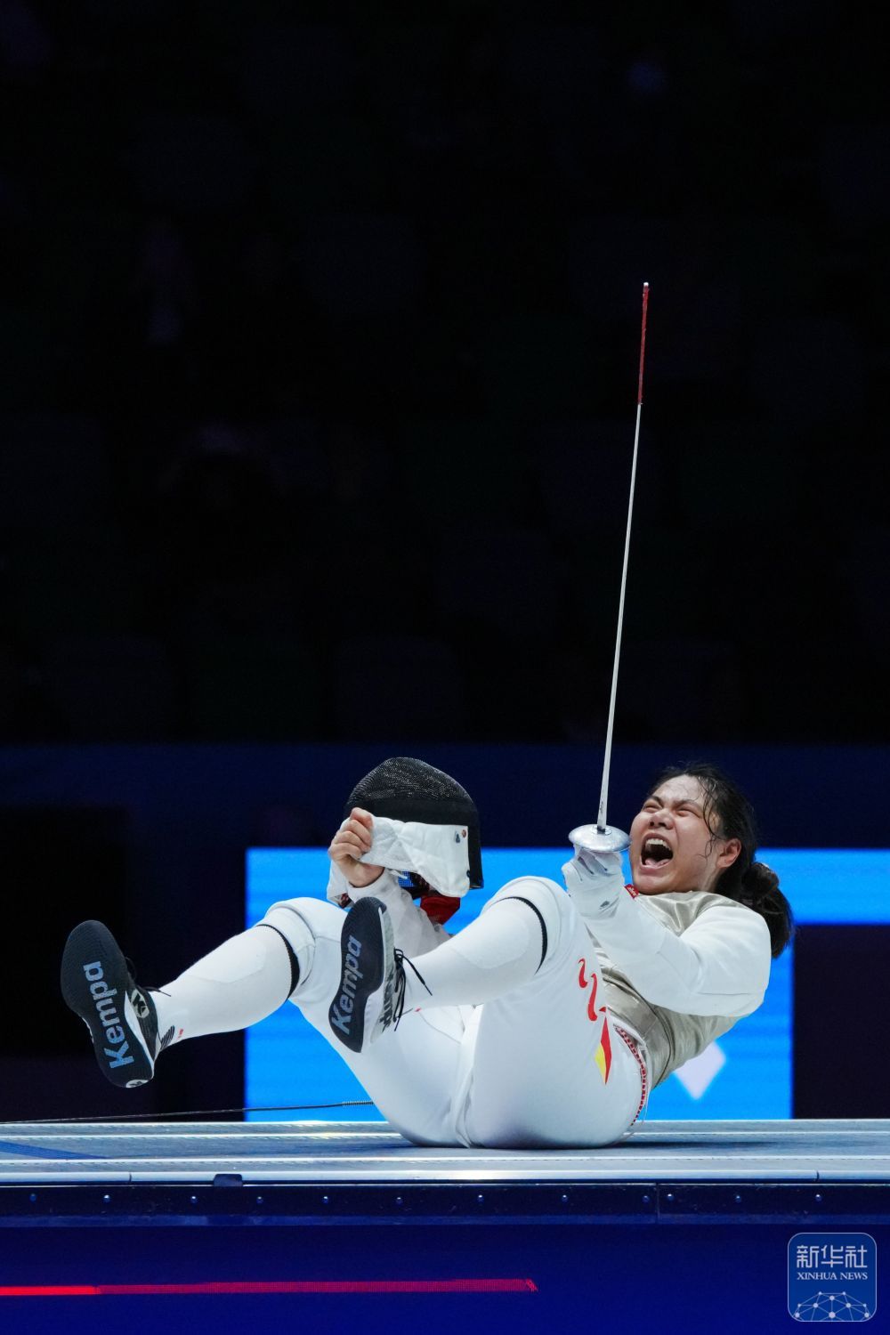 ↑ 福建队选手黄芊芊庆祝夺冠。