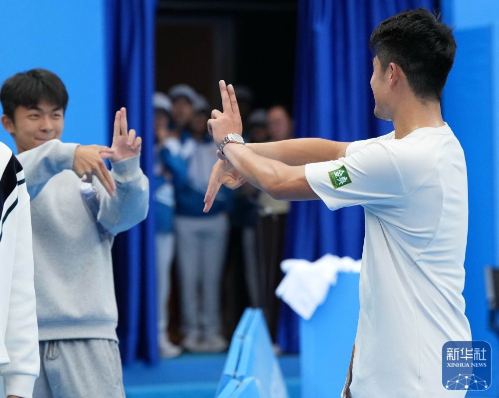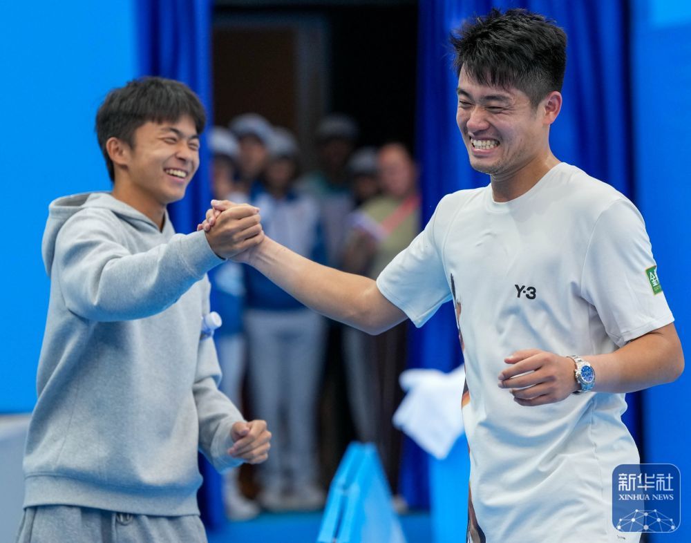↑ 浙江队选手吴易昺(右)在比赛后与队友庆祝。新华社记者 颜麟蕴 摄