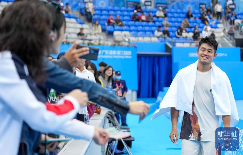 ↑ 浙江队选手吴易昺(右)在比赛后与观众互动。新华社记者 颜麟蕴 摄