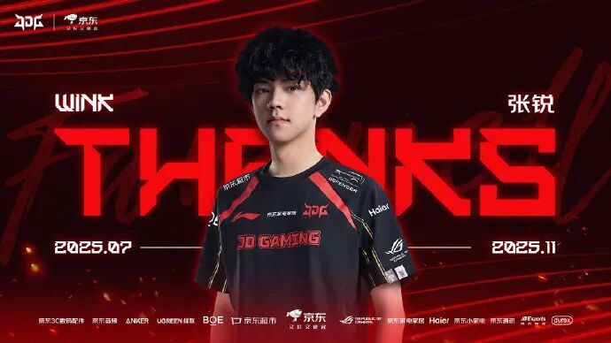 今年7月,Wink从EDG转会加入JDG,接替离队的Missing担任辅助位。效力期间,他与Zhuo组成双辅助轮换体系,但未能帮助队伍晋级S15全球总决赛,整体成绩未达预期。JDG已连续两年无缘世界赛。