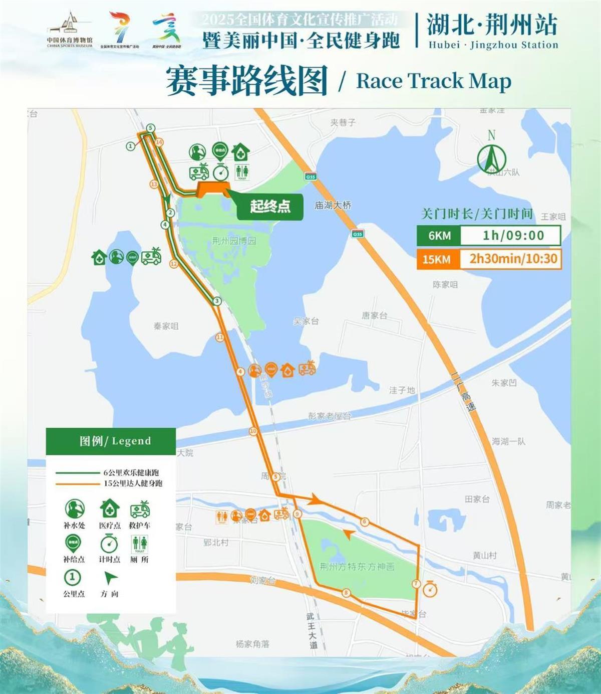 本次全民健身跑活动比赛地点设在荆州纪南生态文化旅游区,该区是当前全国唯一以保护、展示、利用、传承楚文化为特色的城市功能区,是荆楚文化传承发展的重要载体。
