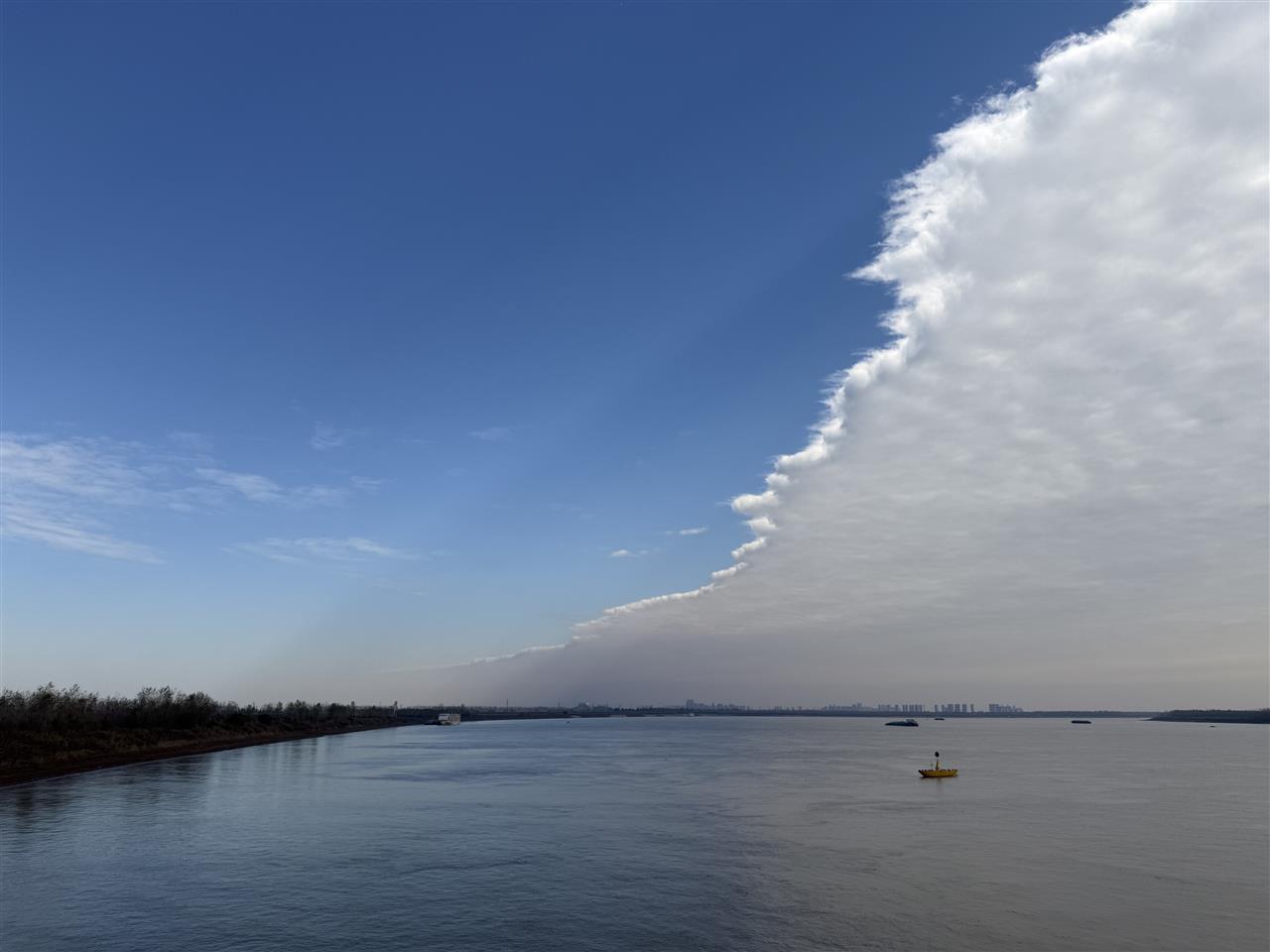 “速度非常快,这震撼一幕,持续时间很短,2分钟左右吧,眼前的‘大片云被’就被冷空气推出了咱们的视野,露出湛蓝的天空。”张女士在汉南长江边巧遇这壮美一幕,感觉自己穿越到盐湖和青甘环线上了。